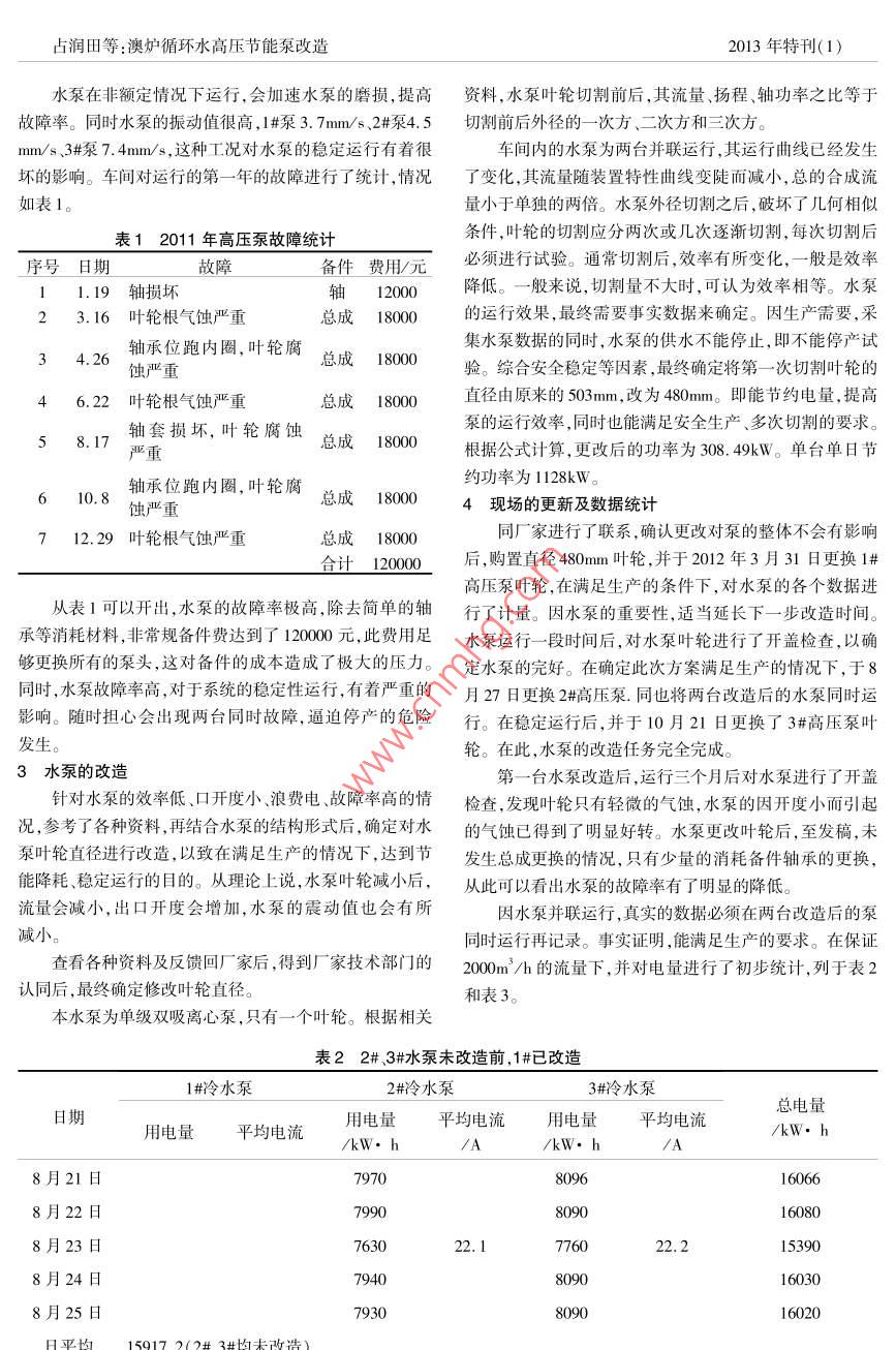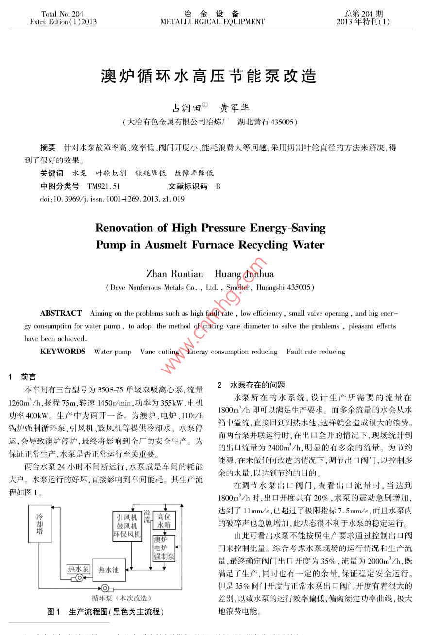 澳炉循环水高压节能泵改造