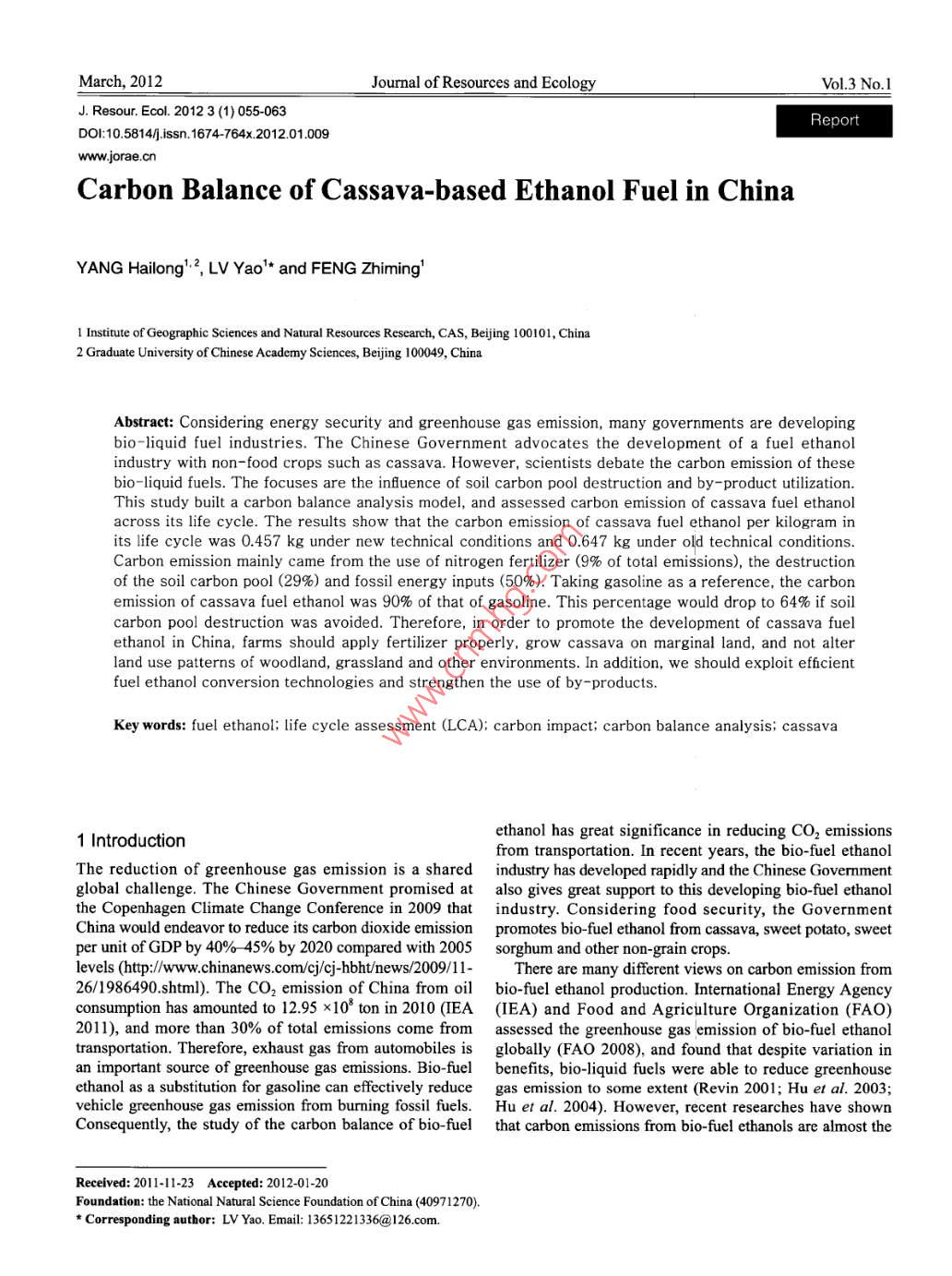 木薯燃料乙醇的碳效应分析