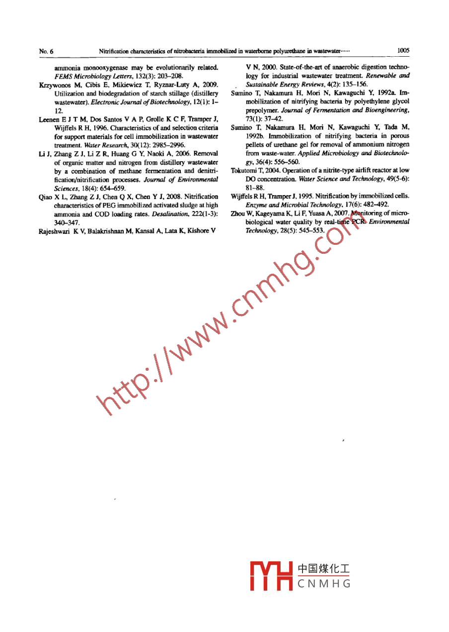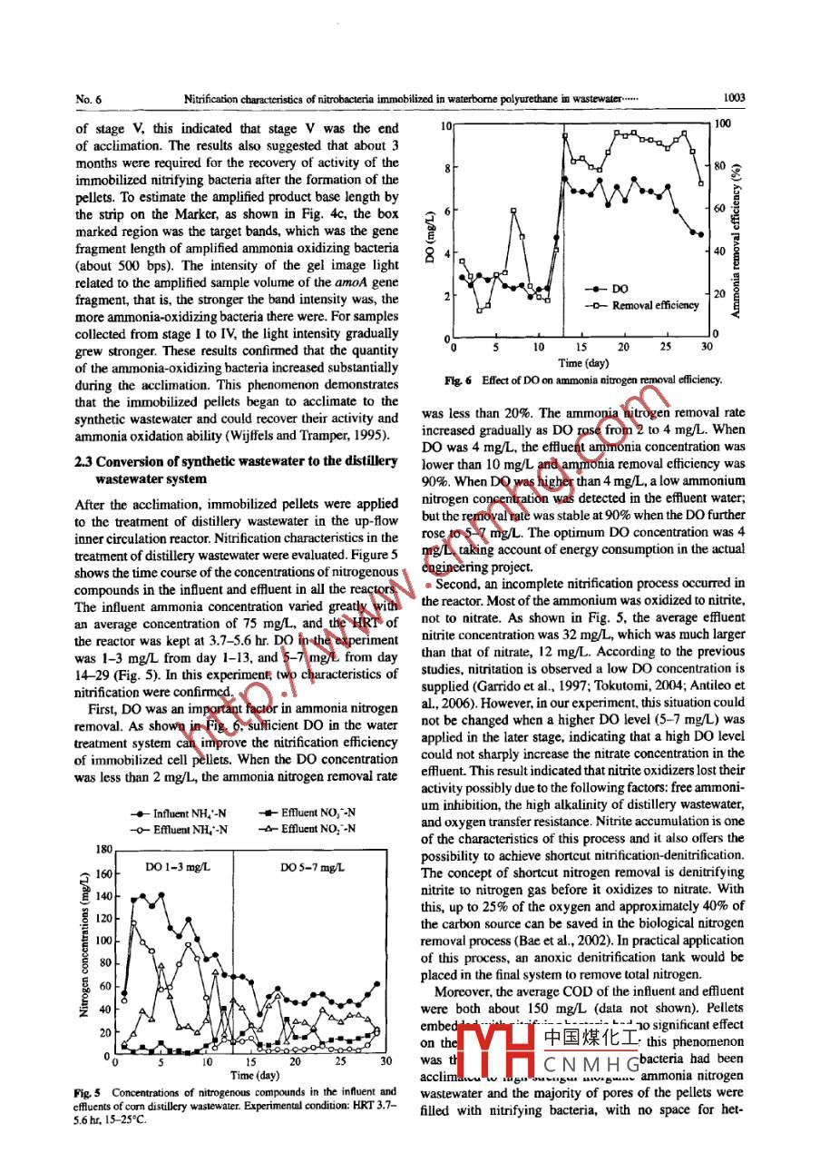 Nitrification characteristics of nitrobacteria immobilized in waterborne polyurethane in wastewater