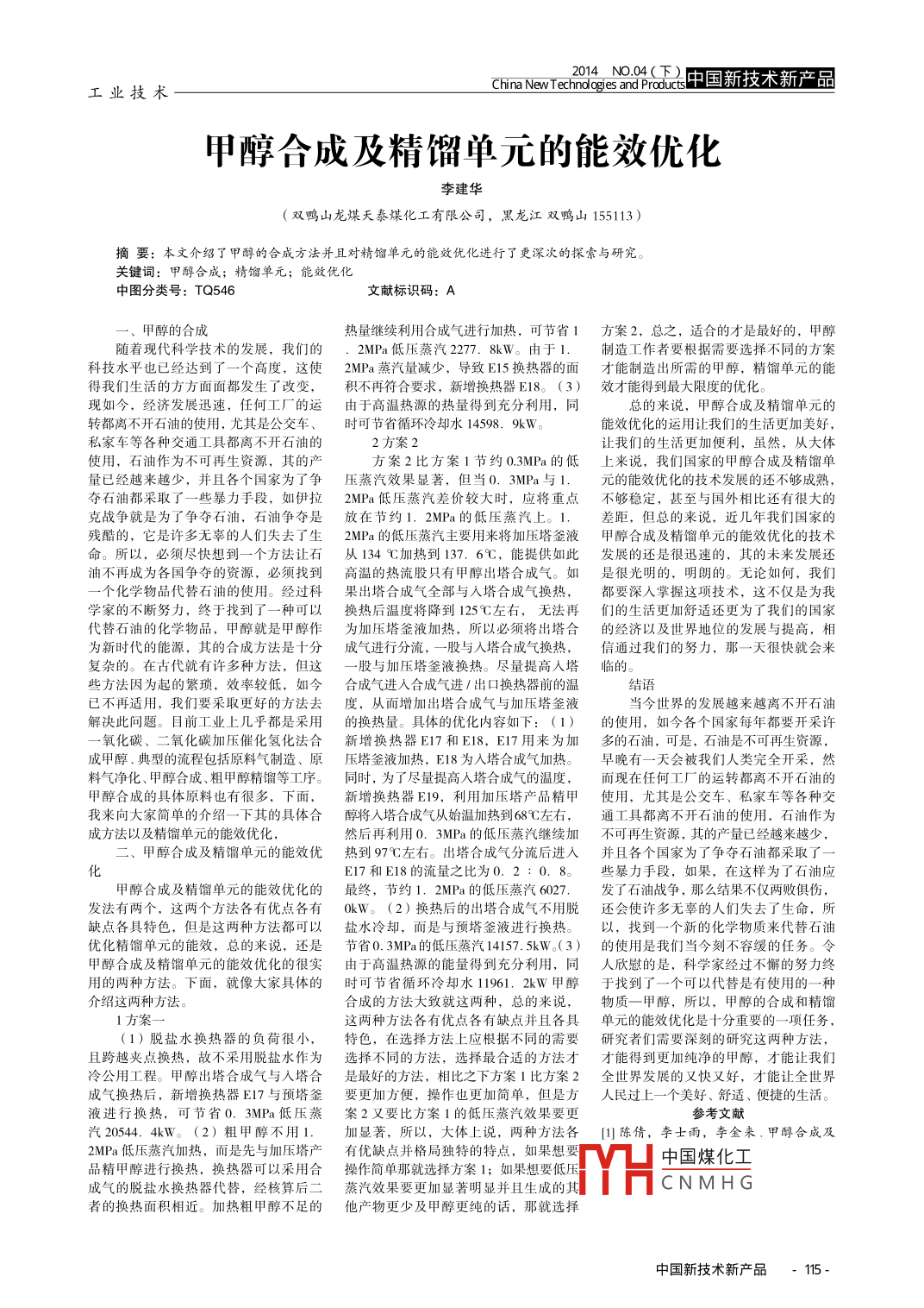 - 作者单位:双鸭山龙煤天泰煤化工有限公司