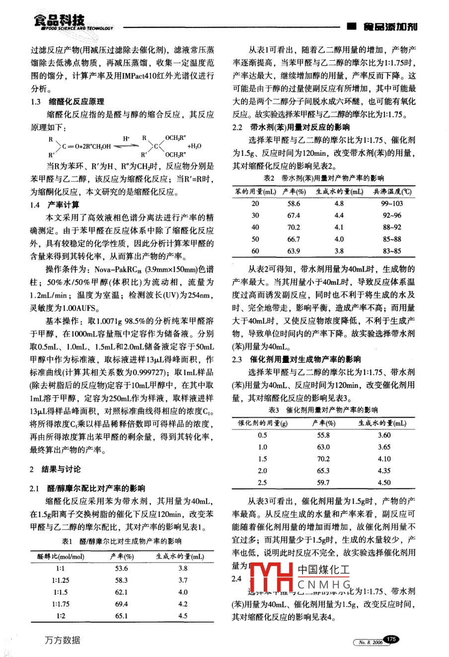 苯甲醛与乙二醇缩醛化反应的研究