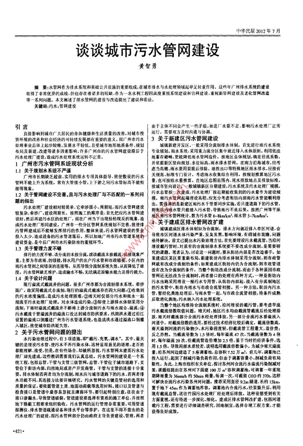 谈谈城市污水管网建设