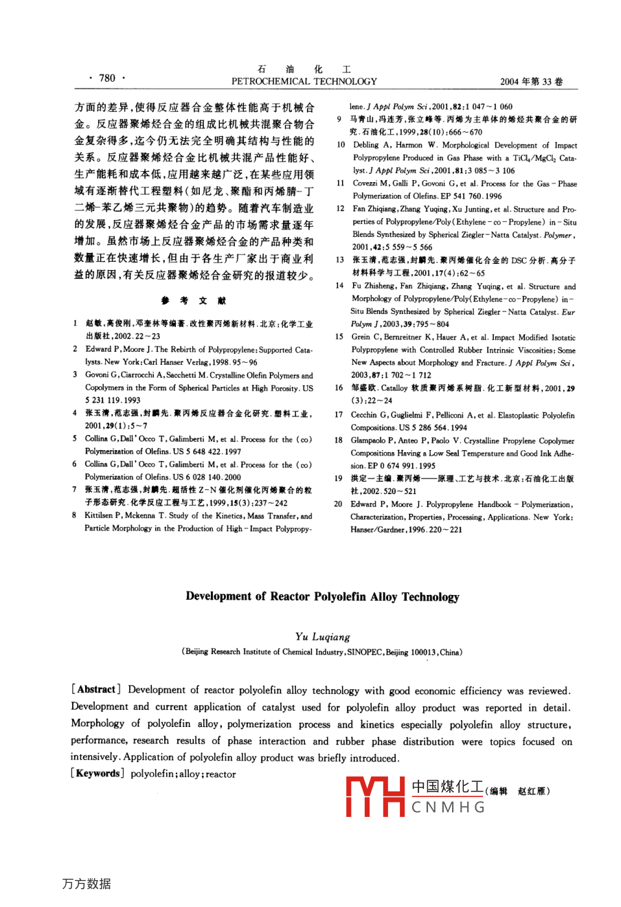 - 期刊名字:雷竞技世界杯手机登录 化工