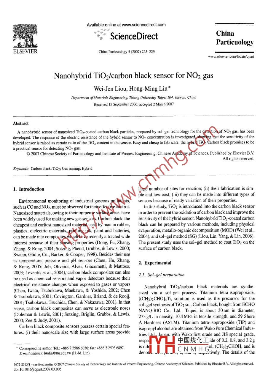 Nanohybrid TiO2/carbon black sensor for NO2 gas