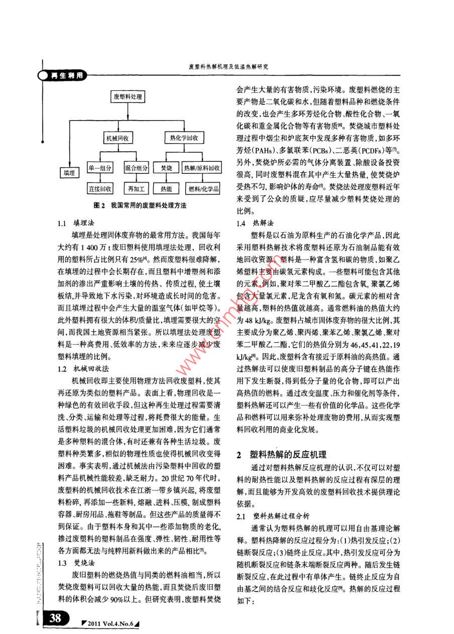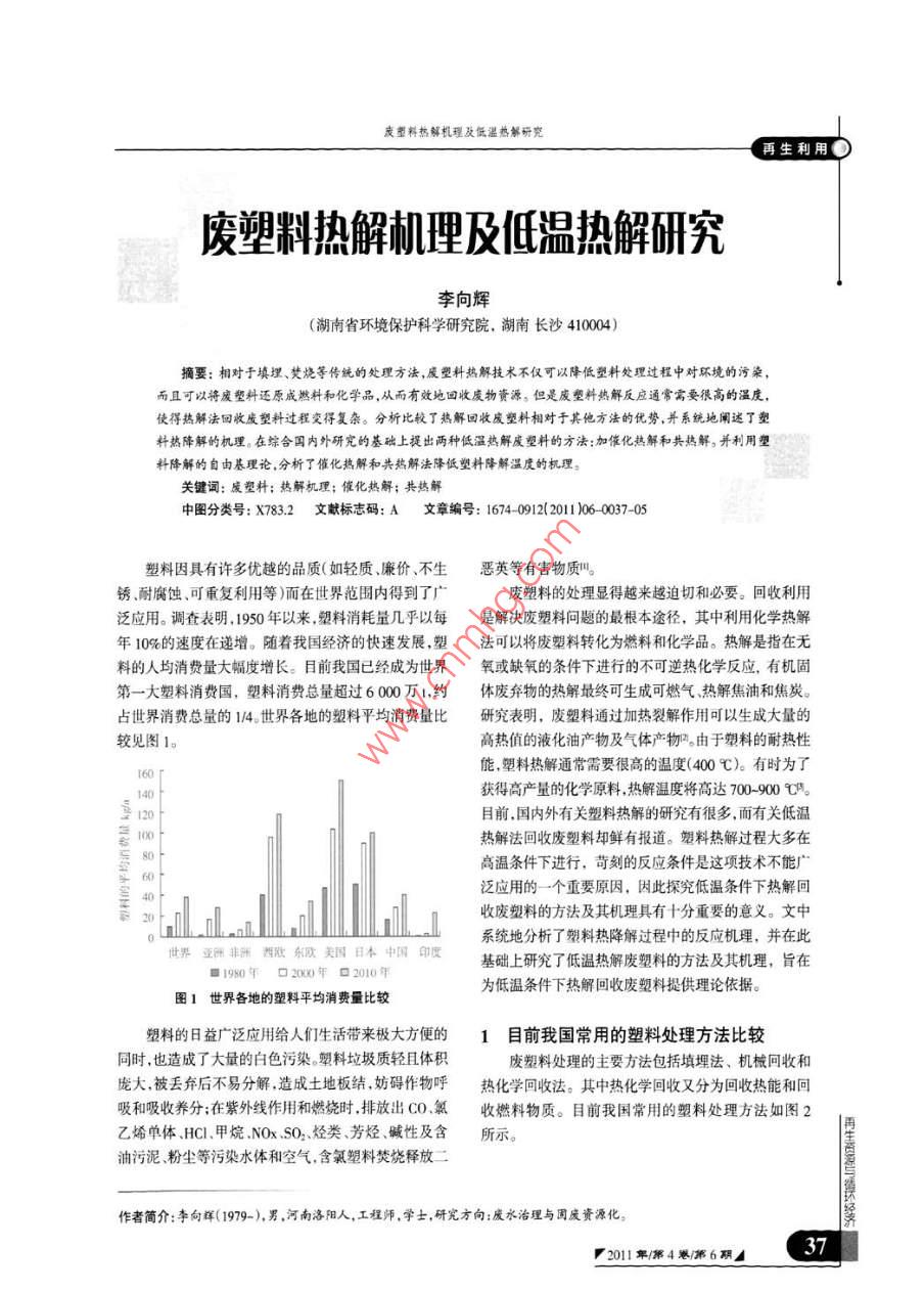 废塑料热解机理及低温热解研究