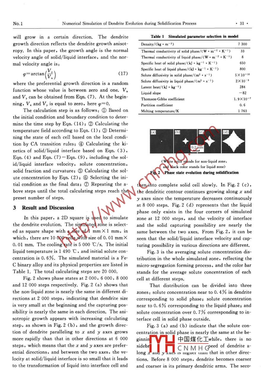 Numerical Simulation of Dendrite Evolution during Solidification Process