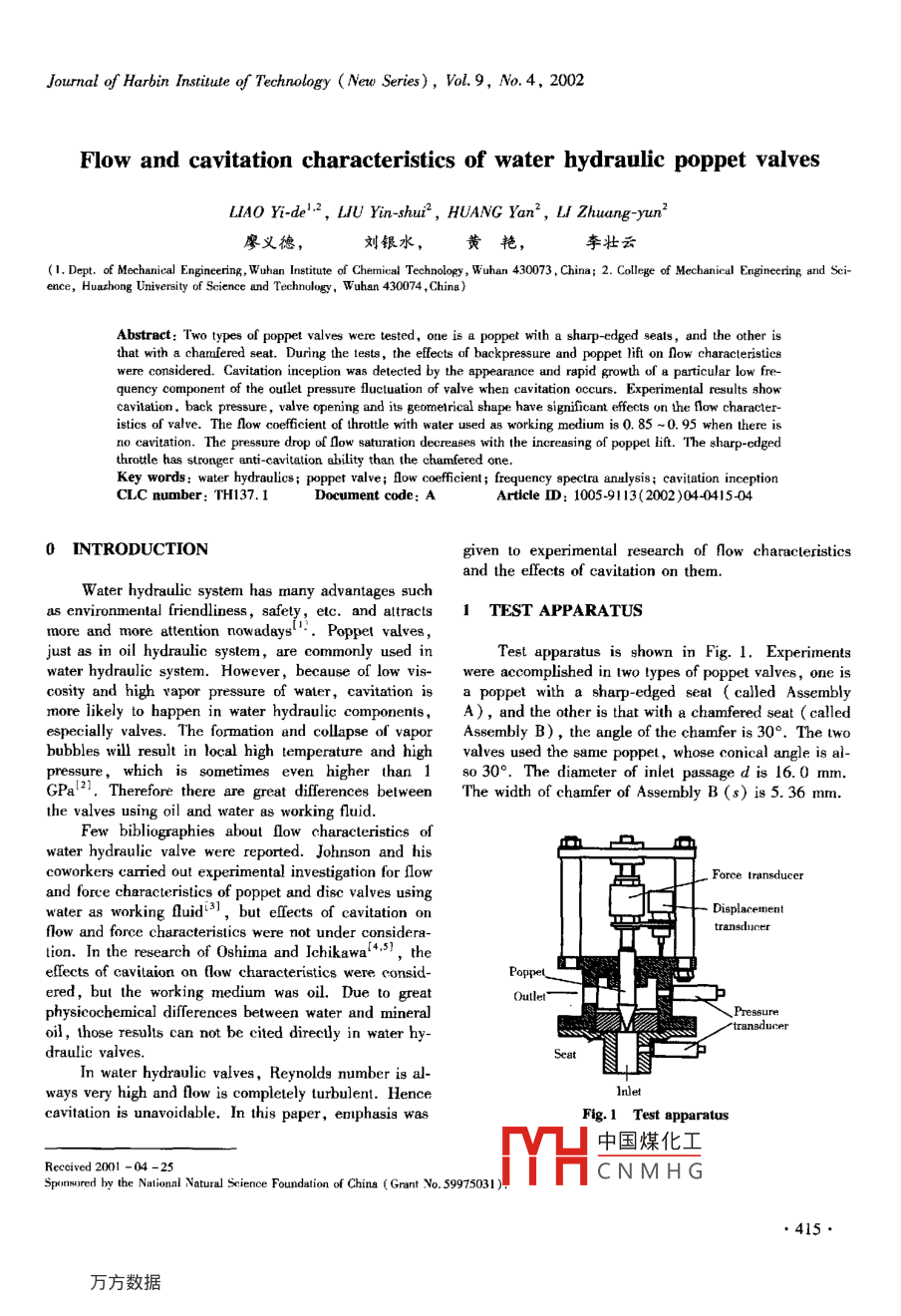 Flow and cavitation characteristics of water hydraulic poppet valves