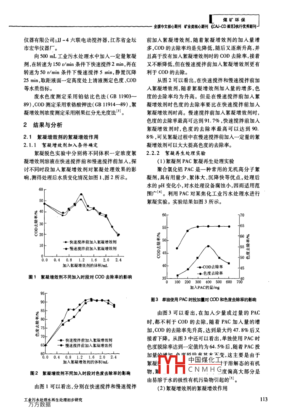 工业污水处理水再生处理初步研究