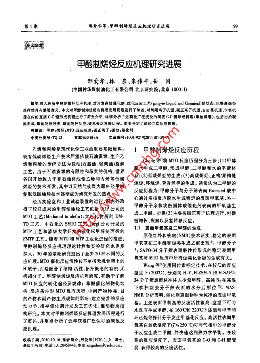 精甲醇及MTO级甲醇精馏工艺技术进展 2020-03-17
