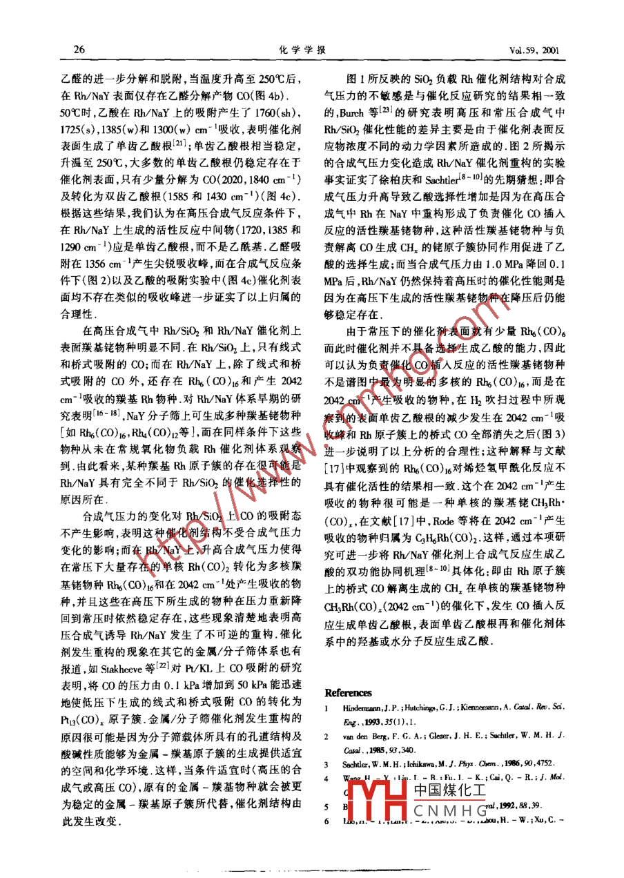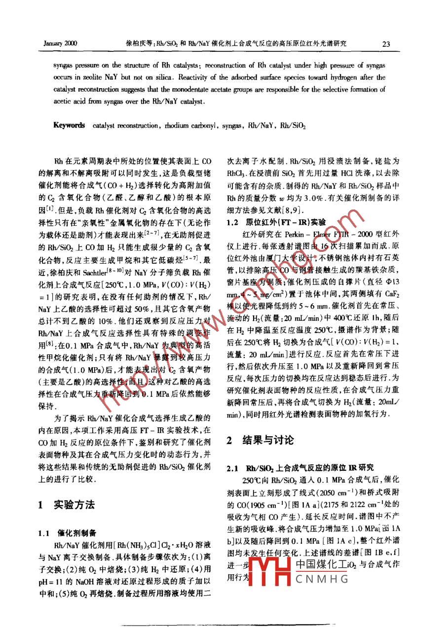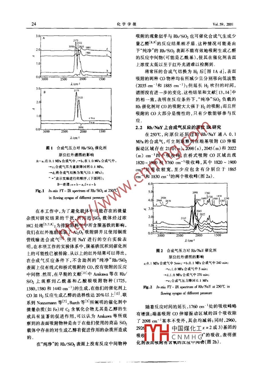 Rh/SiO2和Rh/NaY催化剂上合成气反应的高压原位红外光谱研究