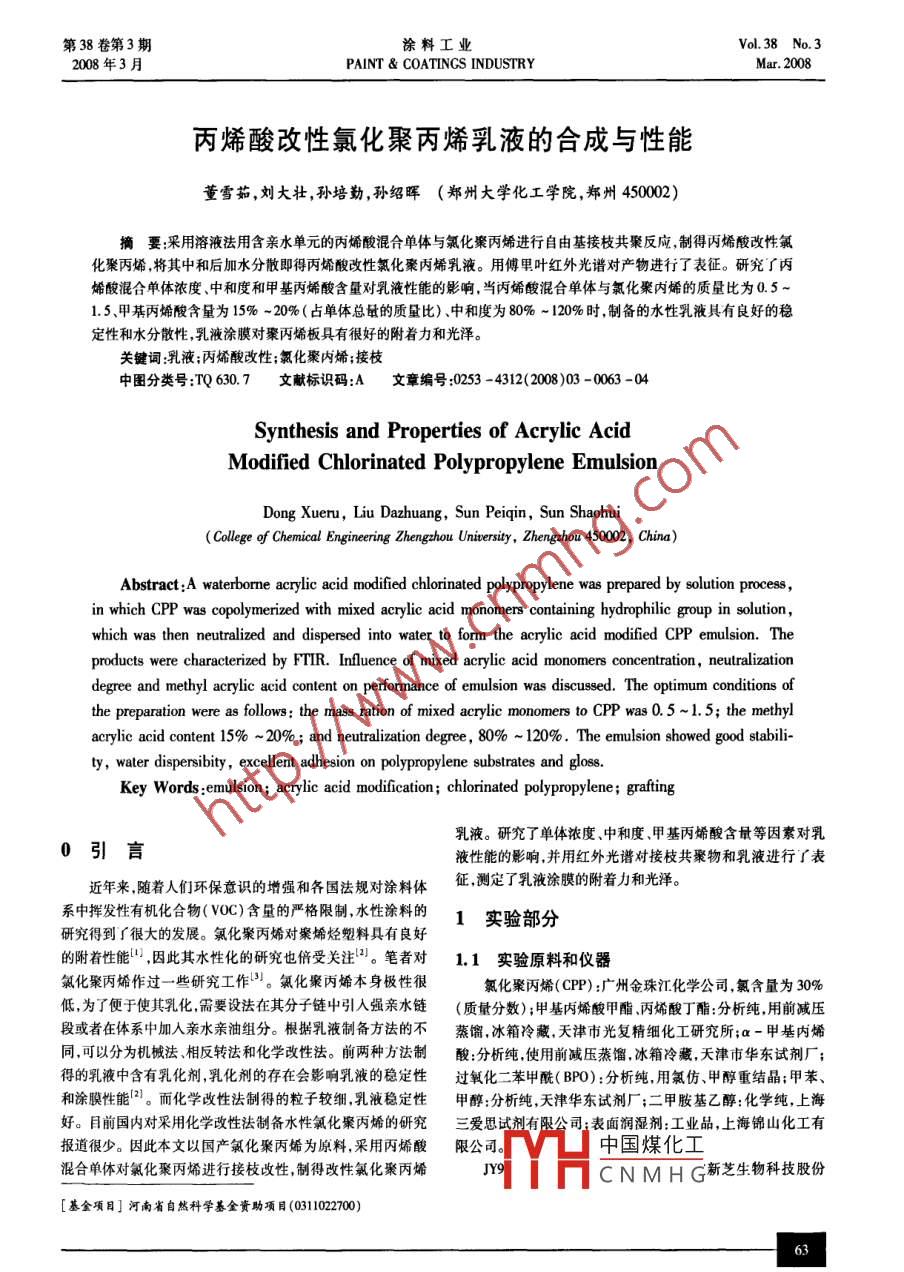 丙烯酸改性氯化聚丙烯乳液的合成与性能