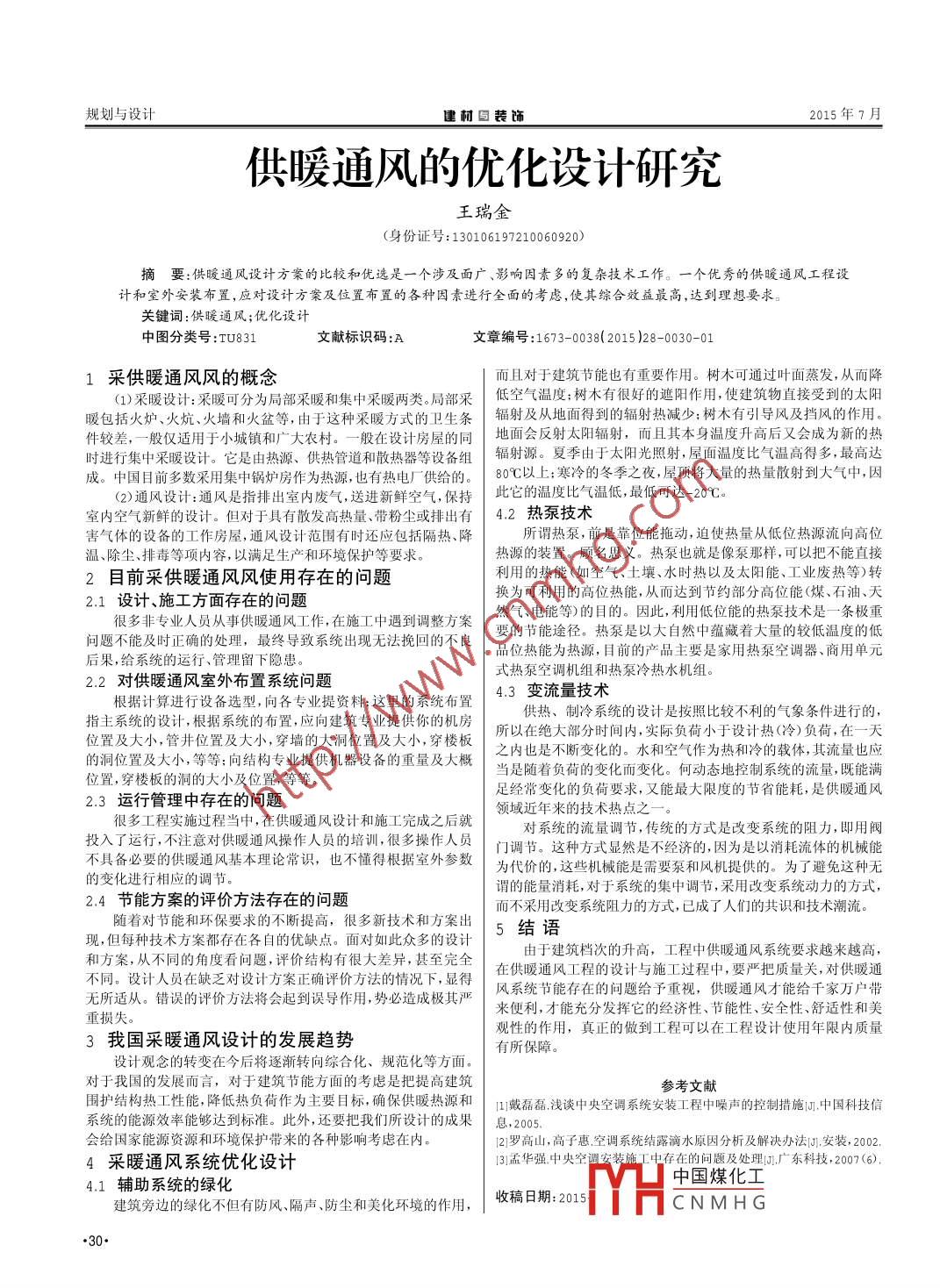 供暖通风的优化设计研究