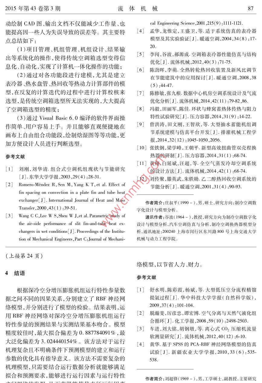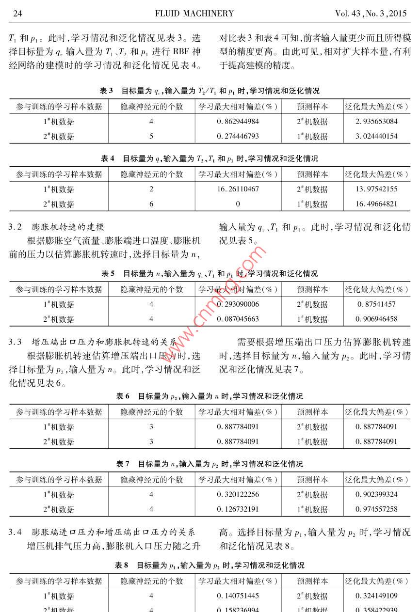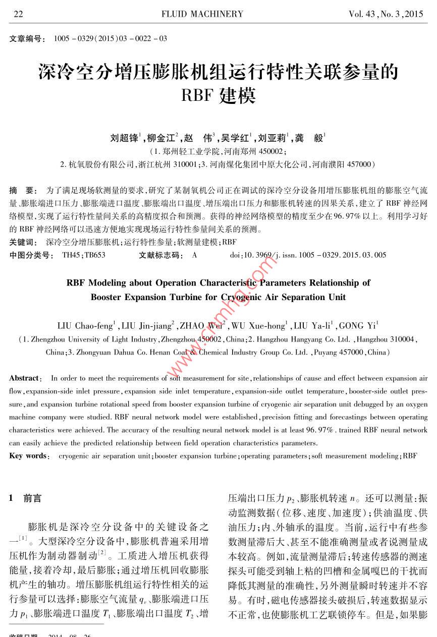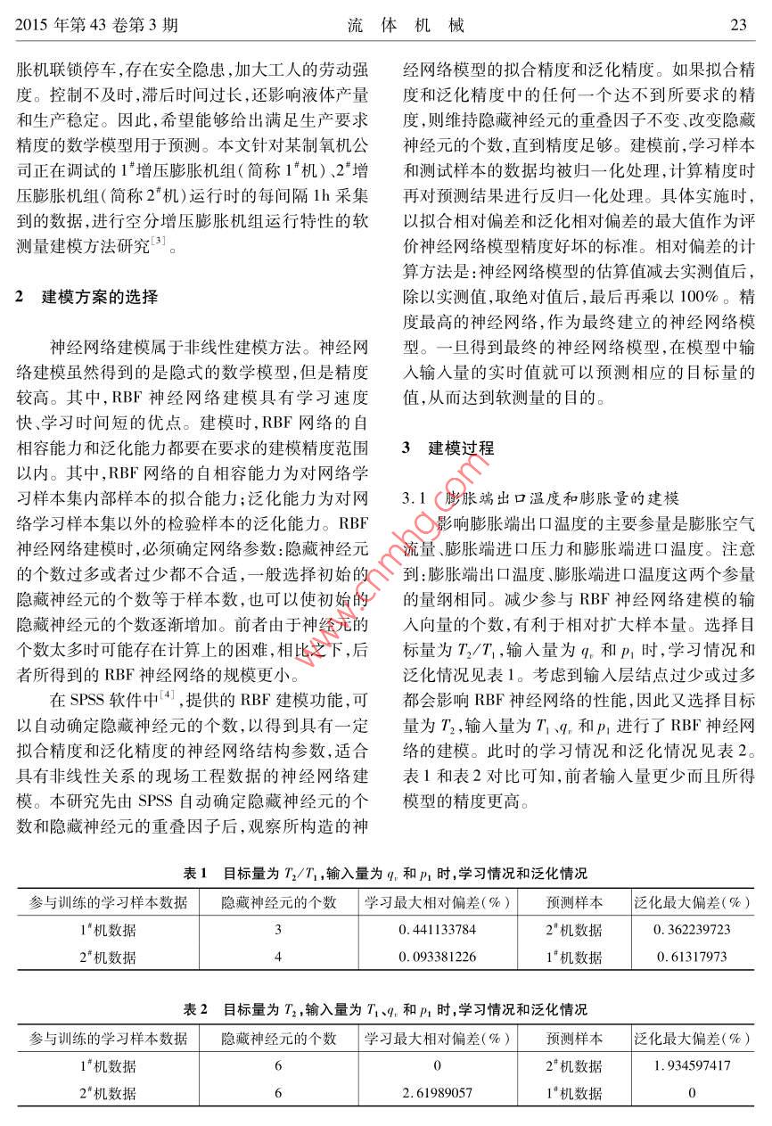 深冷空分增压膨胀机组运行特性关联参量的RBF 建模