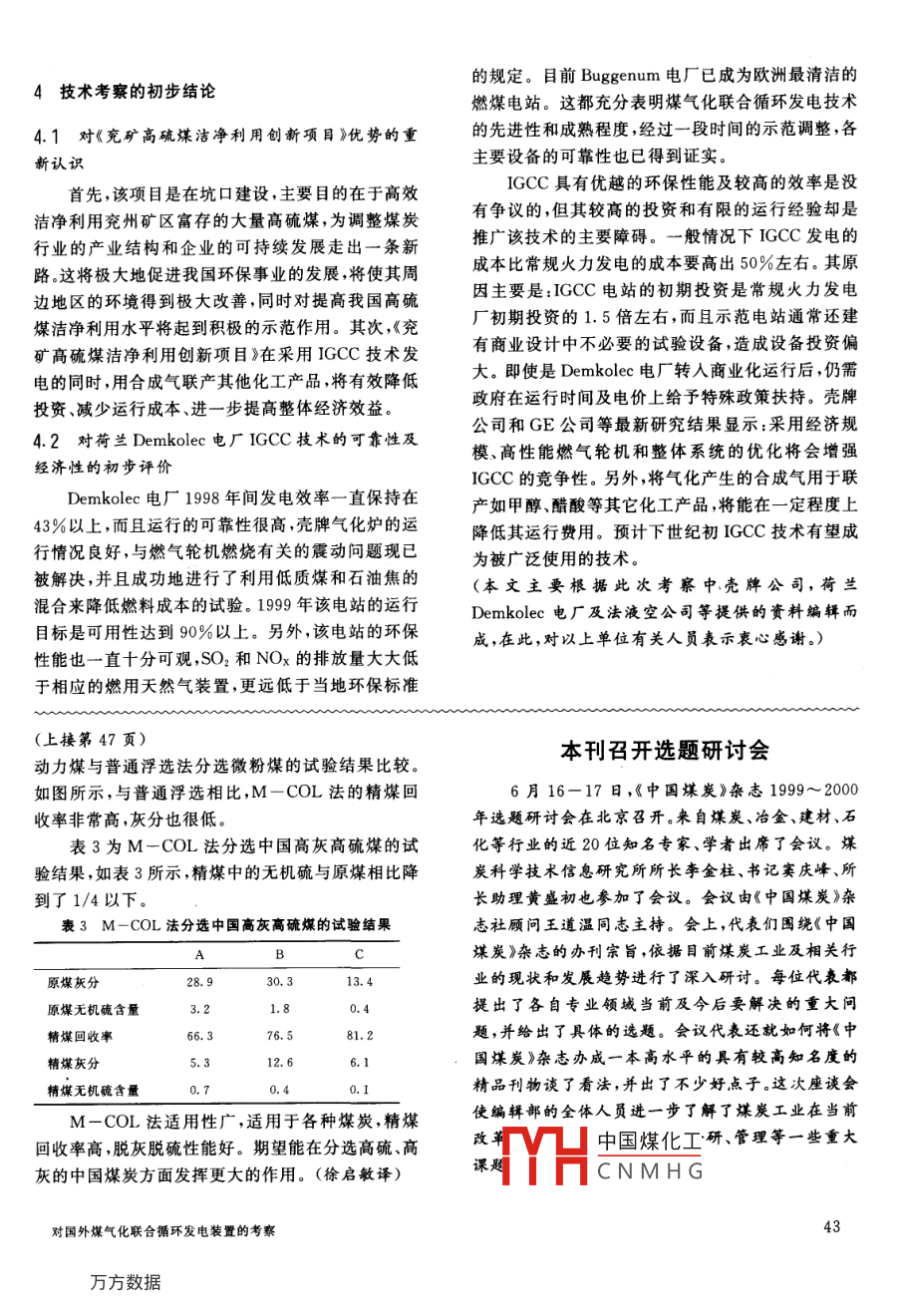 对国外煤气化联合循环发电装置的考察