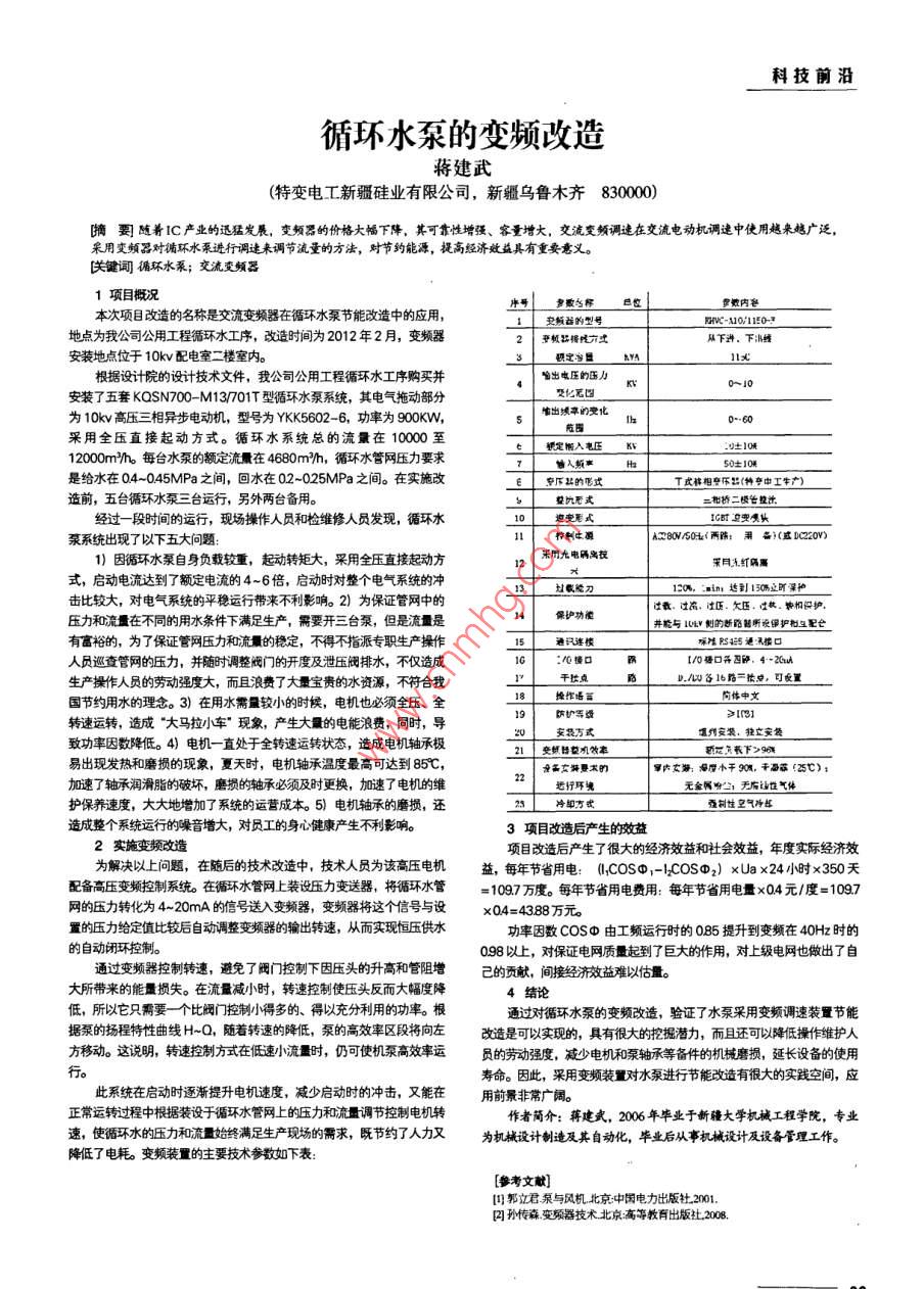 循环水泵的变频改造
