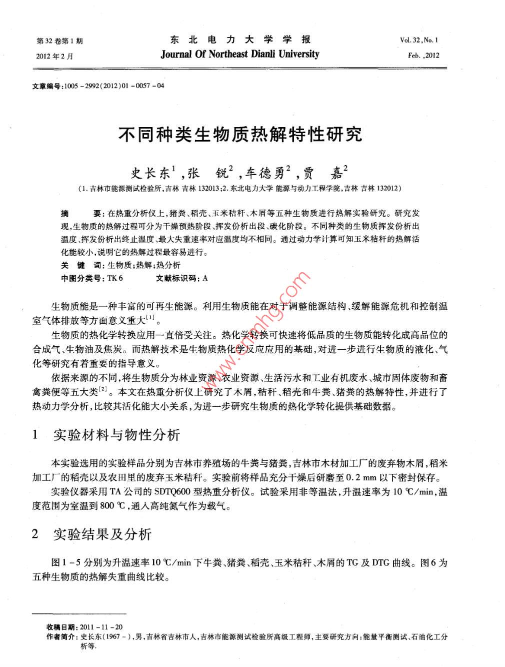 不同种类生物质热解特性研究
