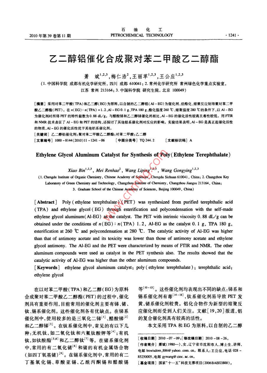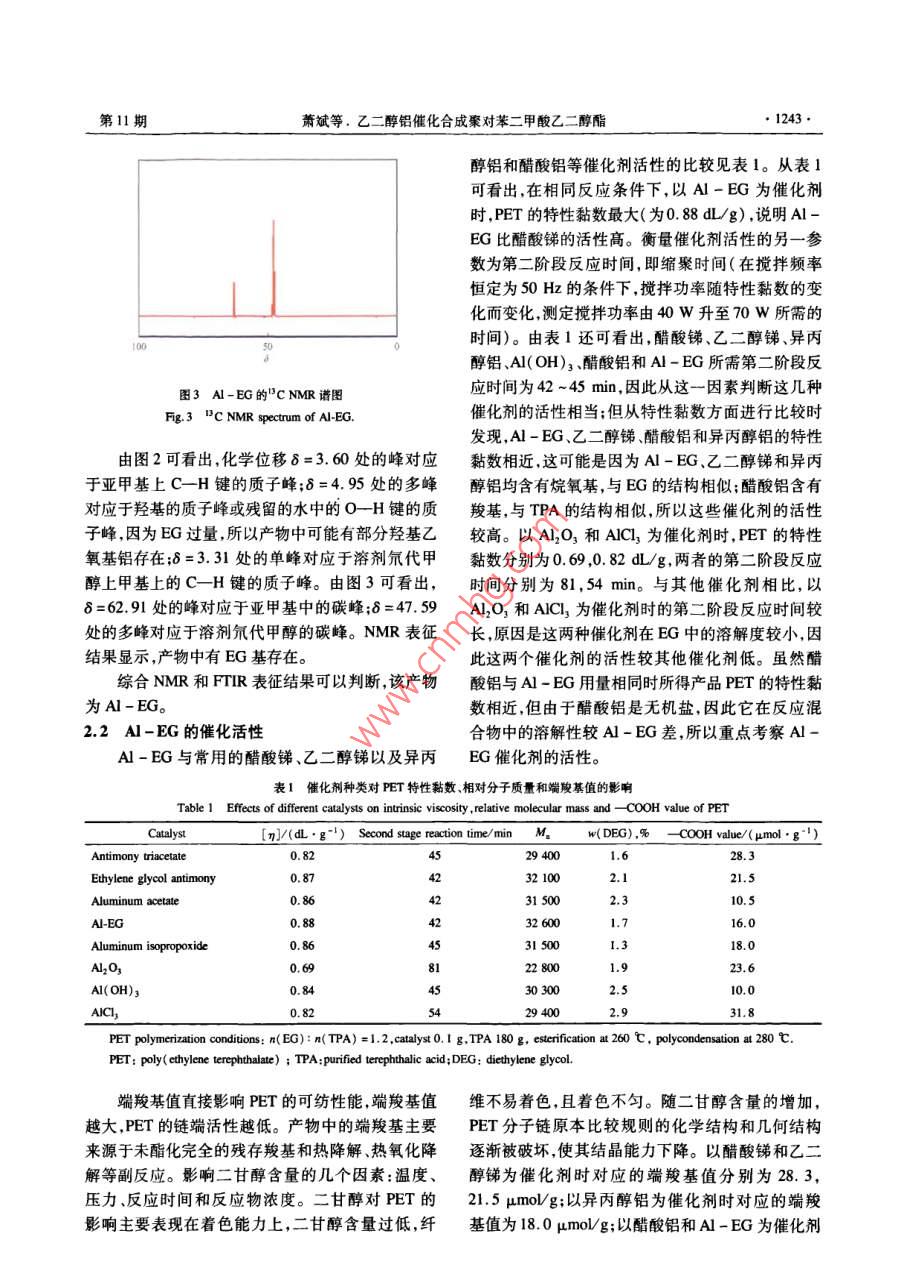 乙二醇铝催化合成聚对苯二甲酸乙二醇酯