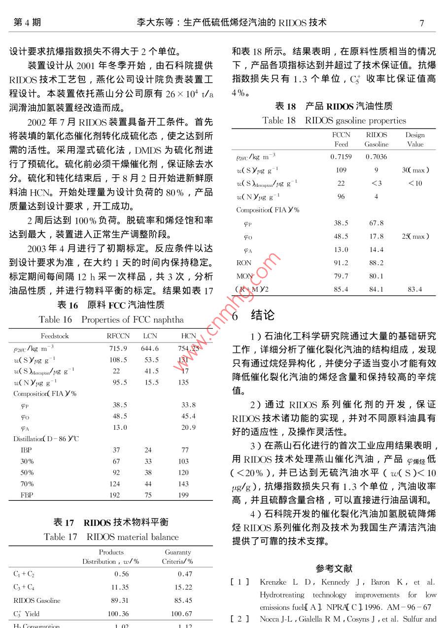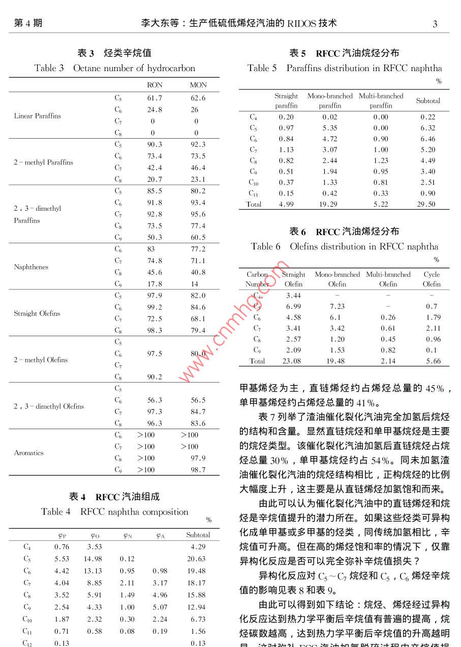 生产低硫低烯烃汽油的RIDOS技术