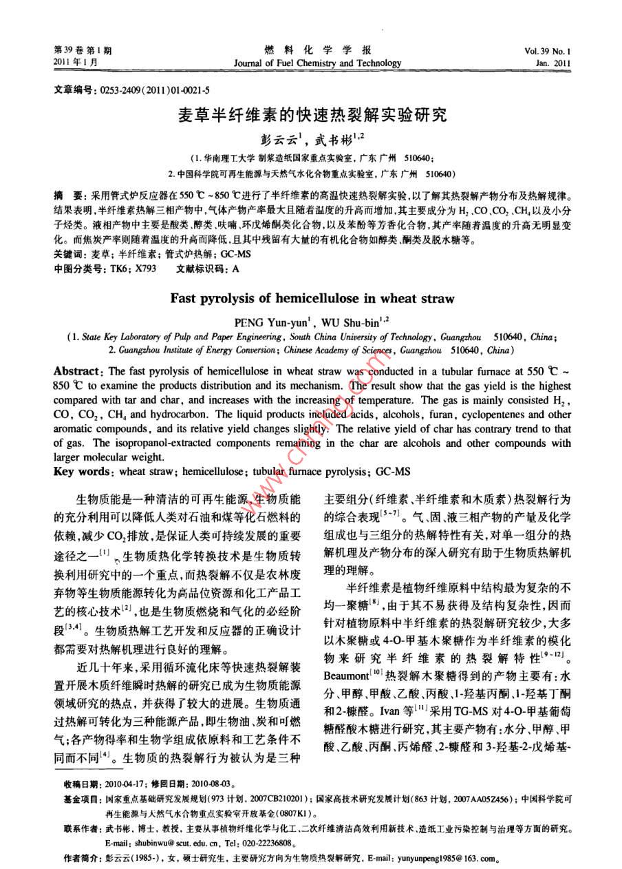 - 论文作者:彭云云,武书彬