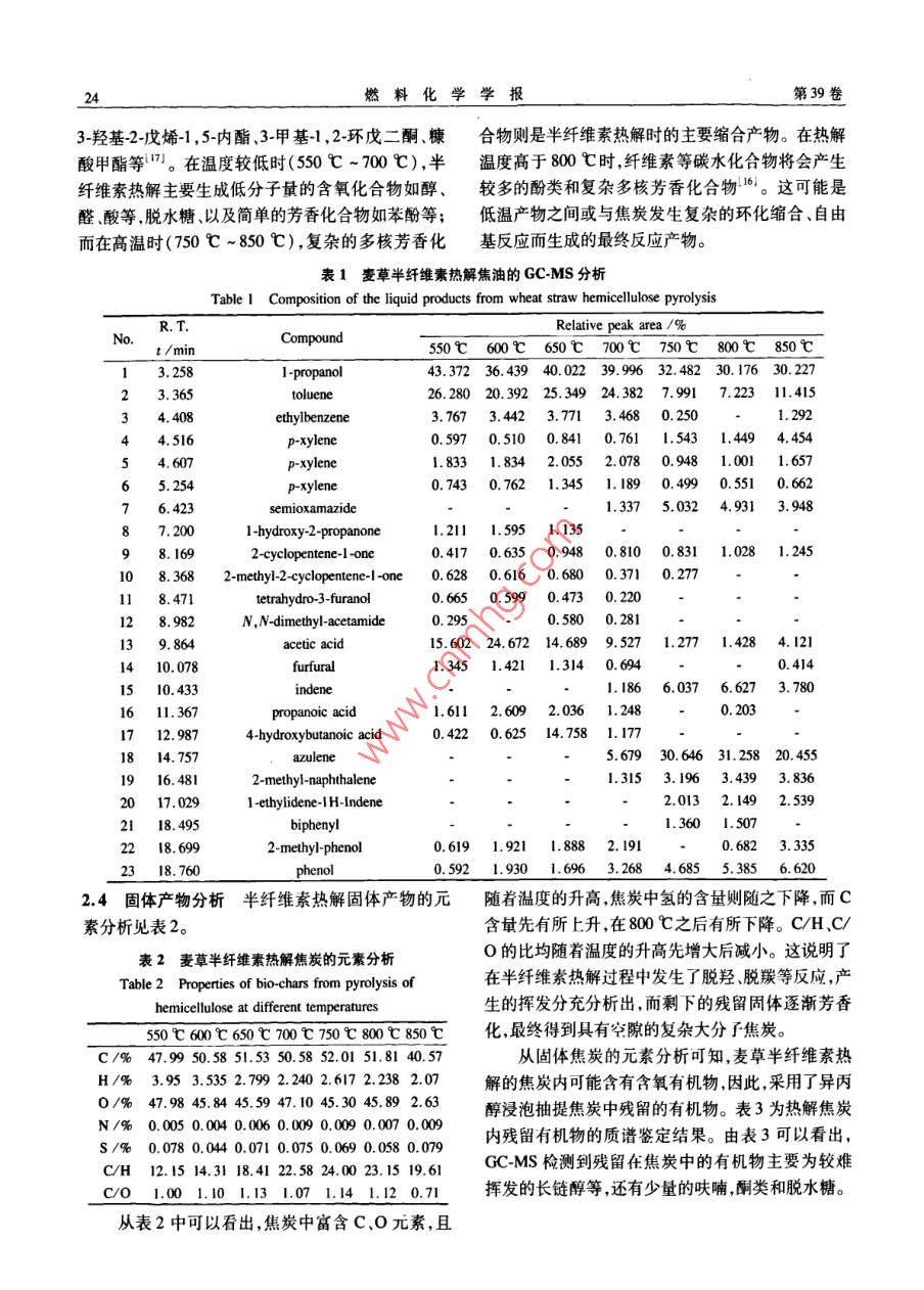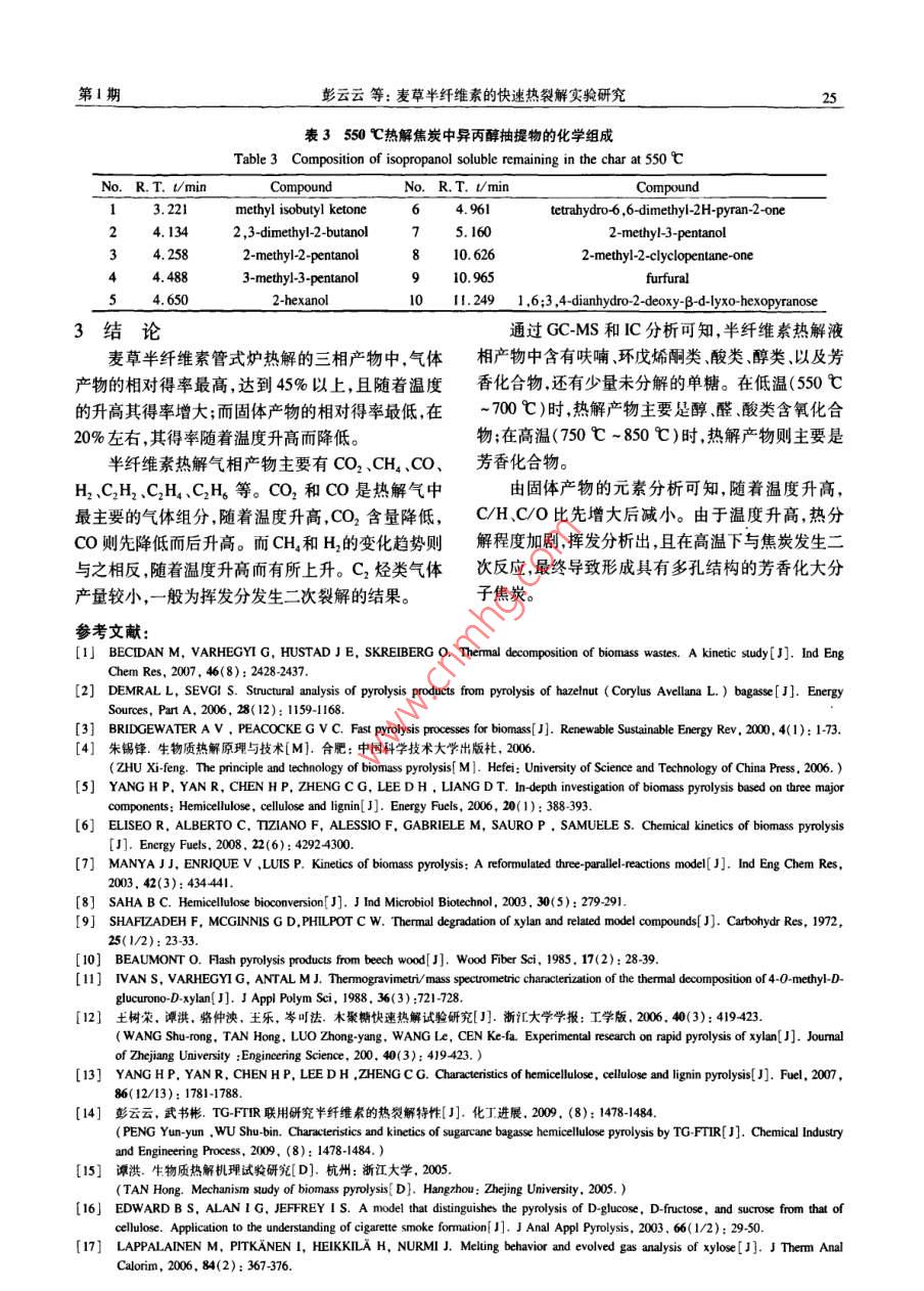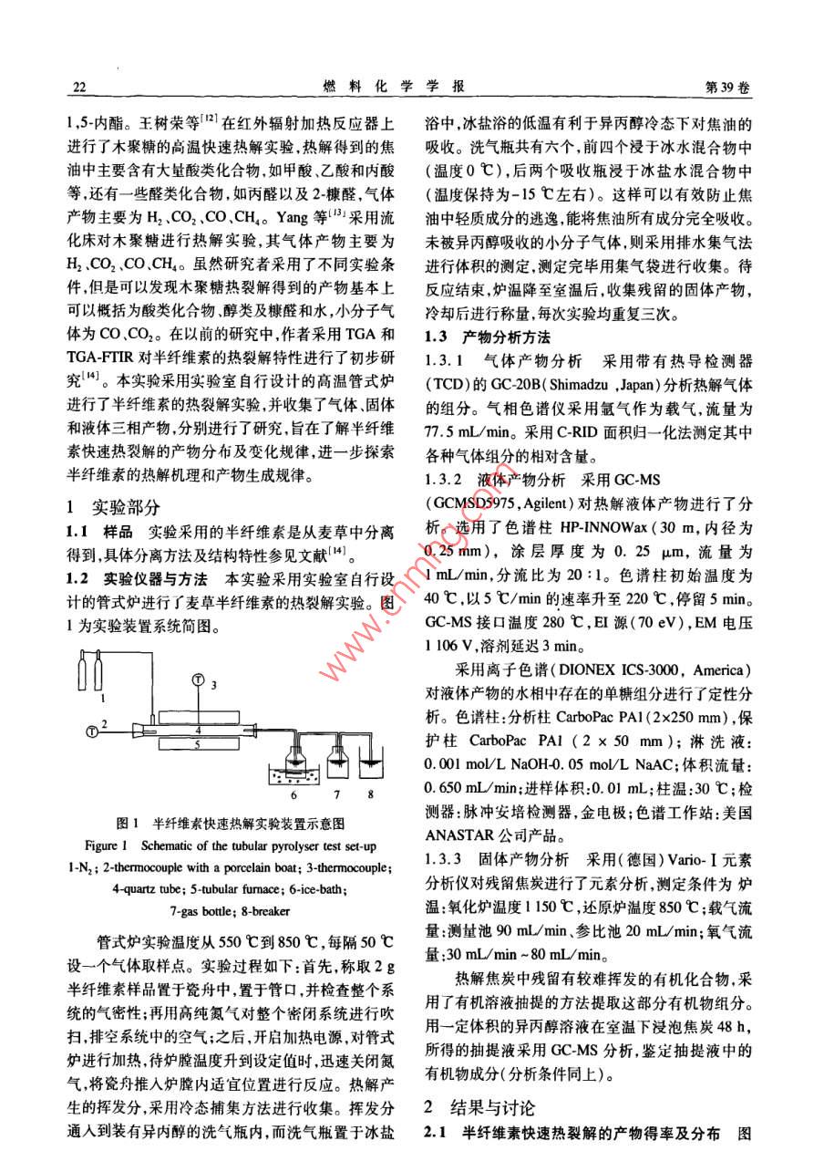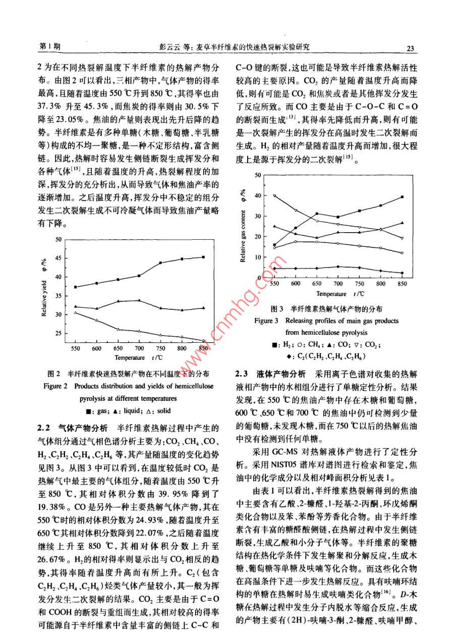 麦草半纤维素的快速热裂解实验研究