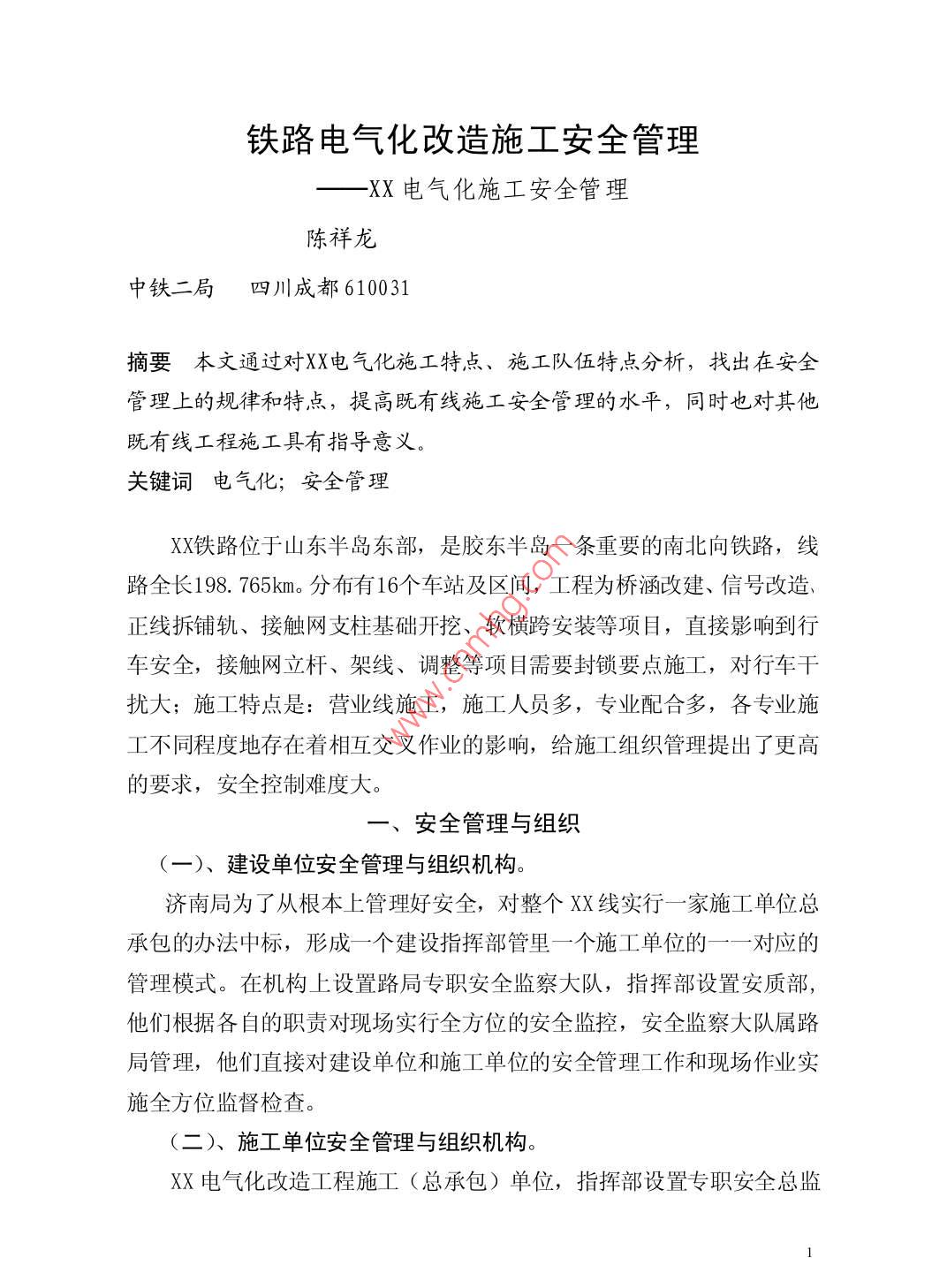 铁路电气化改造施工安全管理