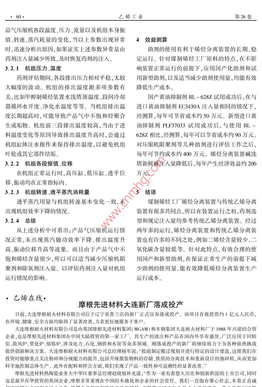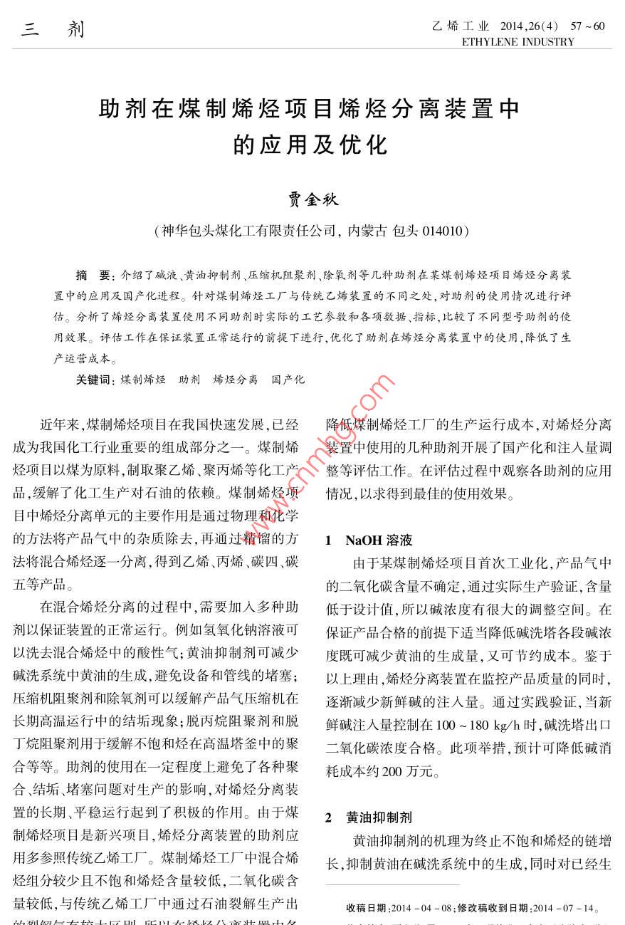 助剂在煤制烯烃项目烯烃分离装置中的应用及优化