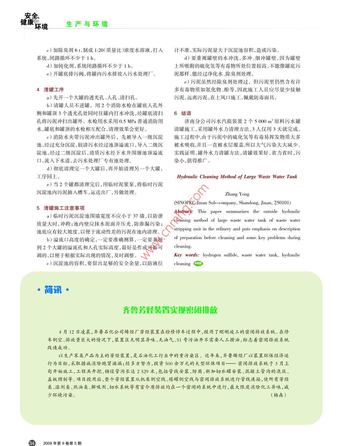 - 期刊名字:安全、健康和环境