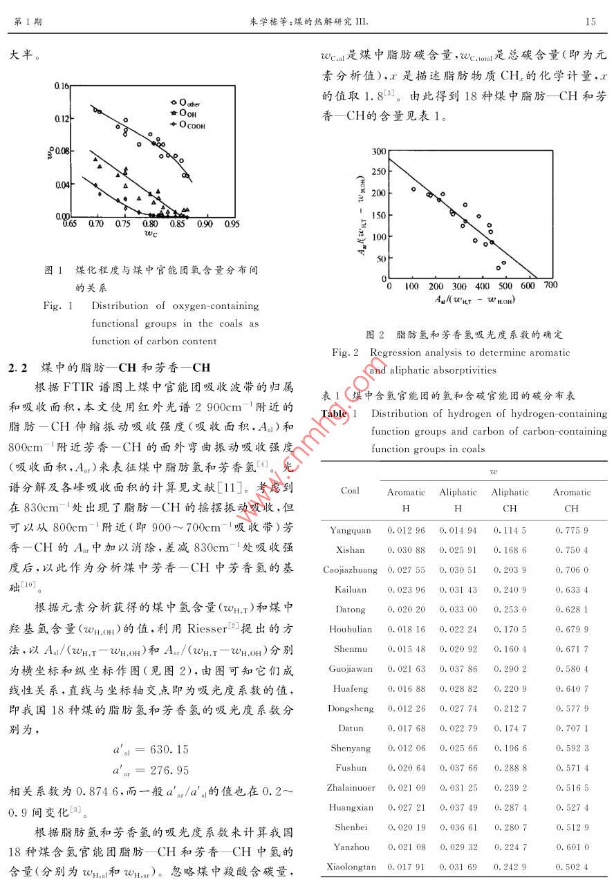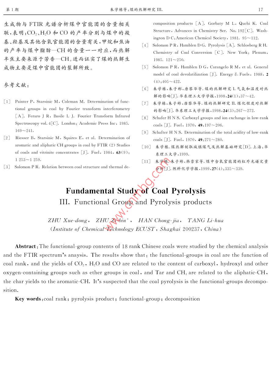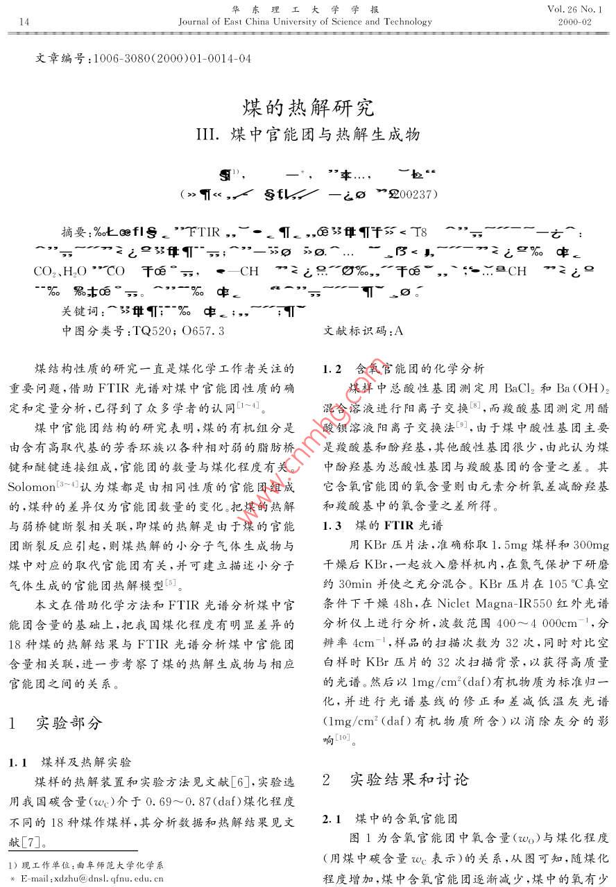 煤的热解研究Ⅲ.煤中官能团与热解生成物