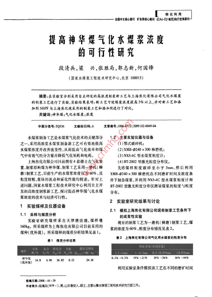 - 作者单位:国家水煤浆工程技术研究中心