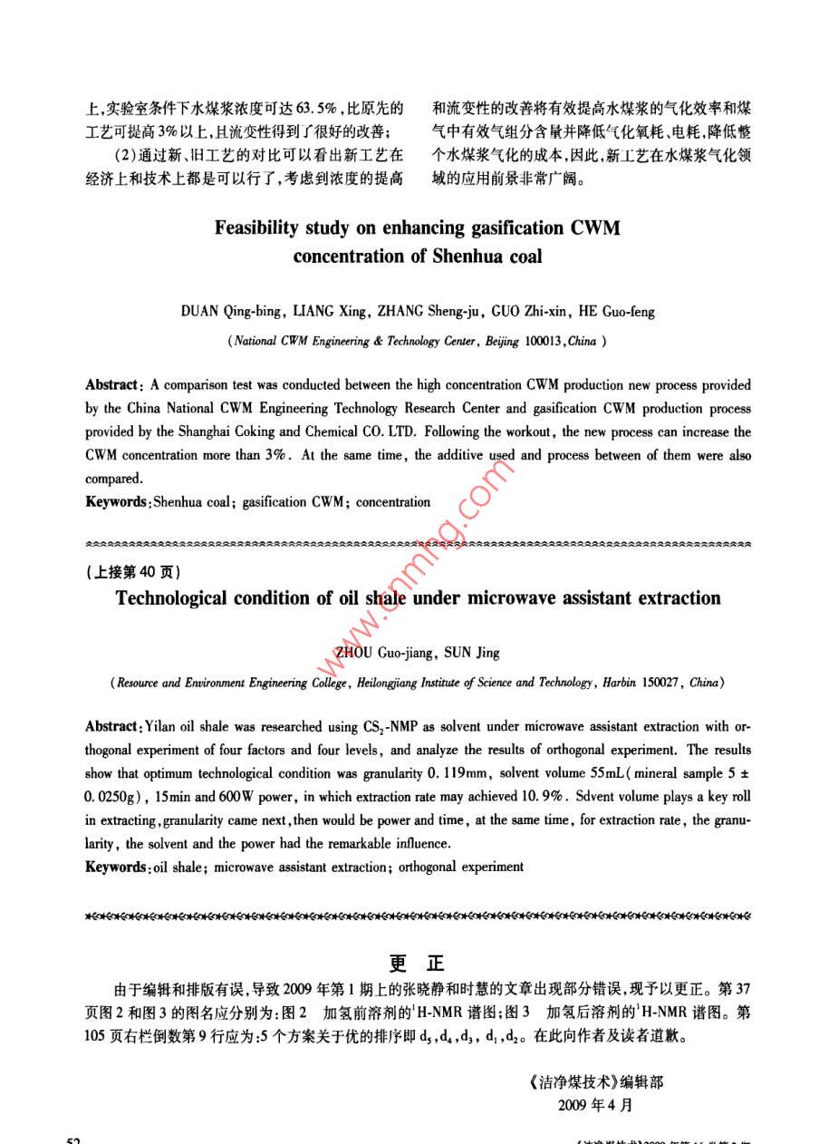 - 期刊名字:洁净煤技术