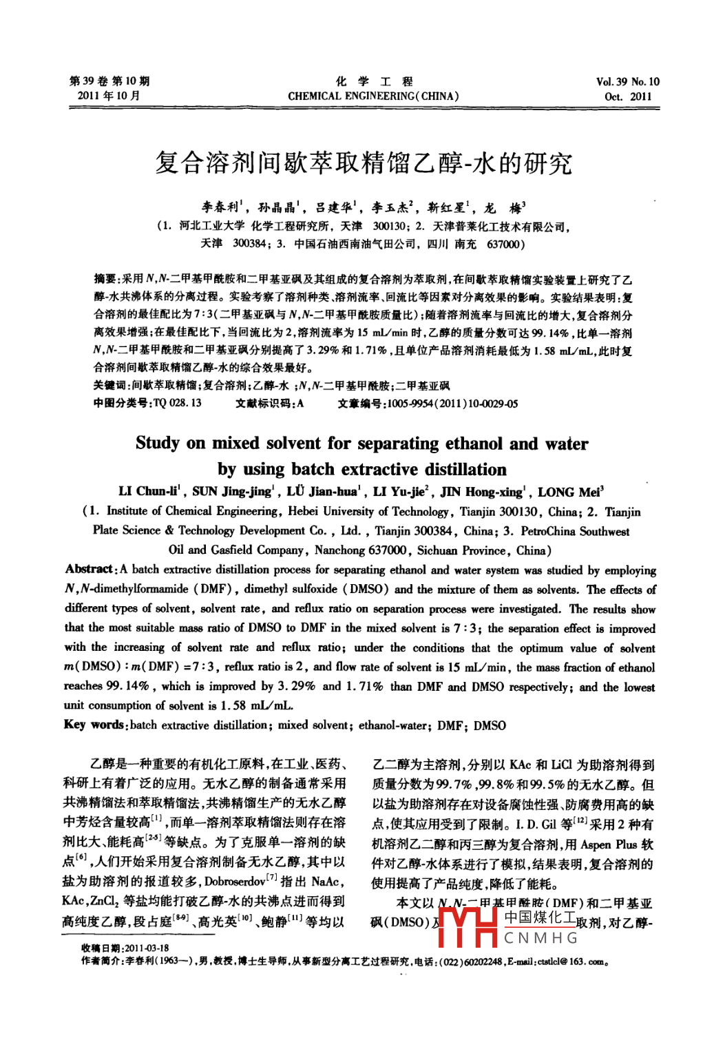 - 期刊名字:化学工程