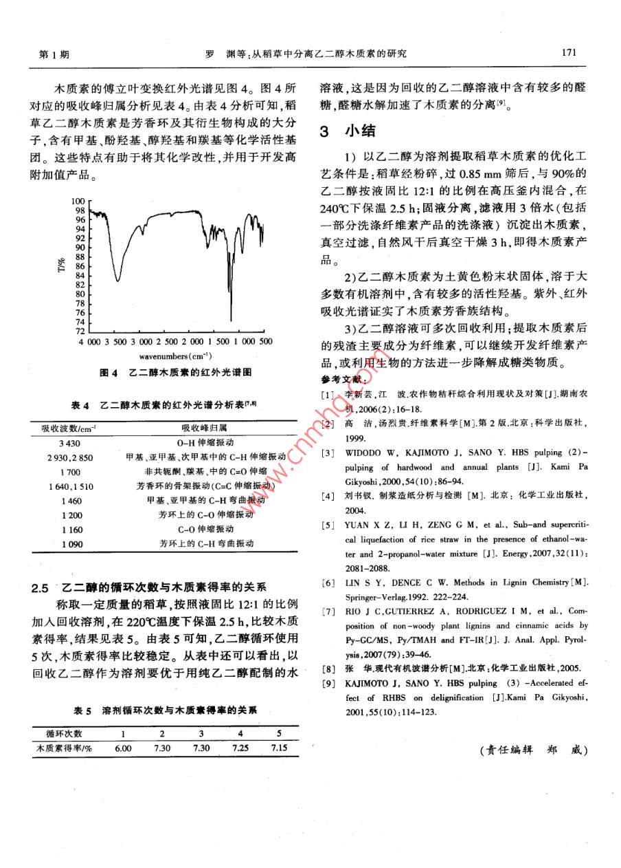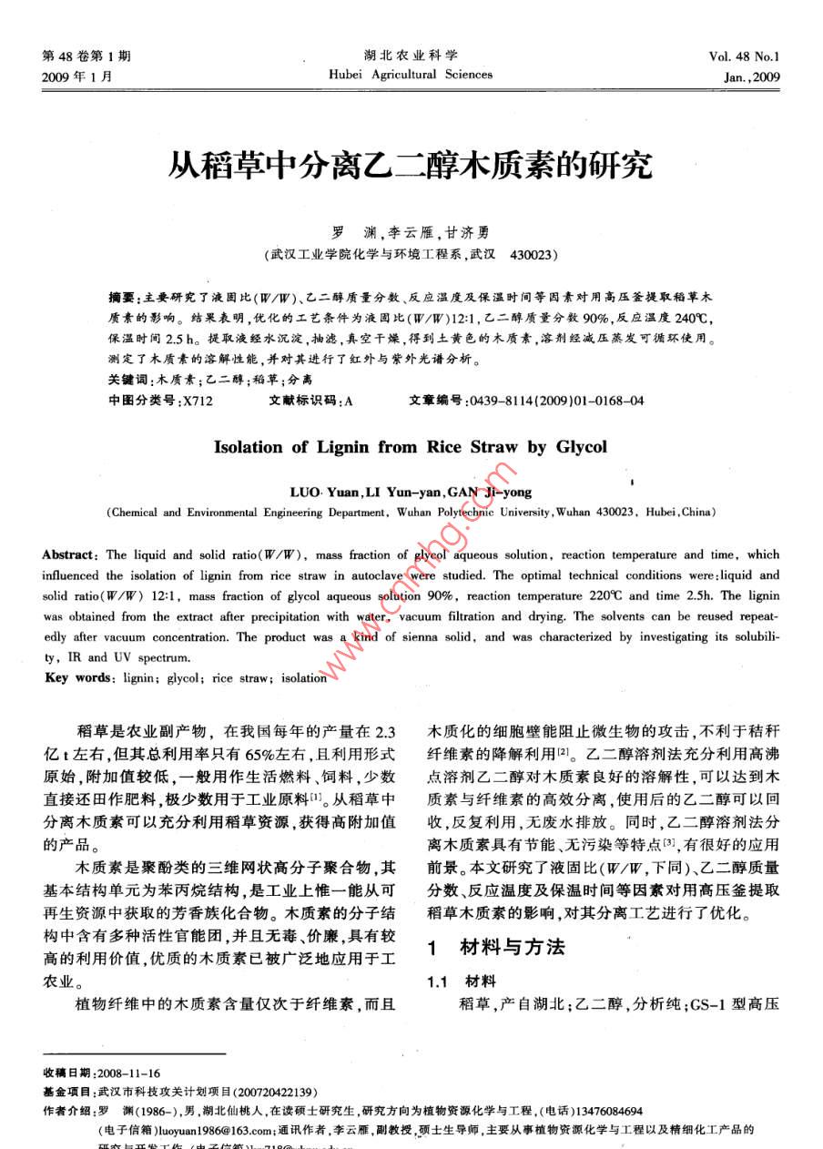 从稻草中分离乙二醇木质素的研究