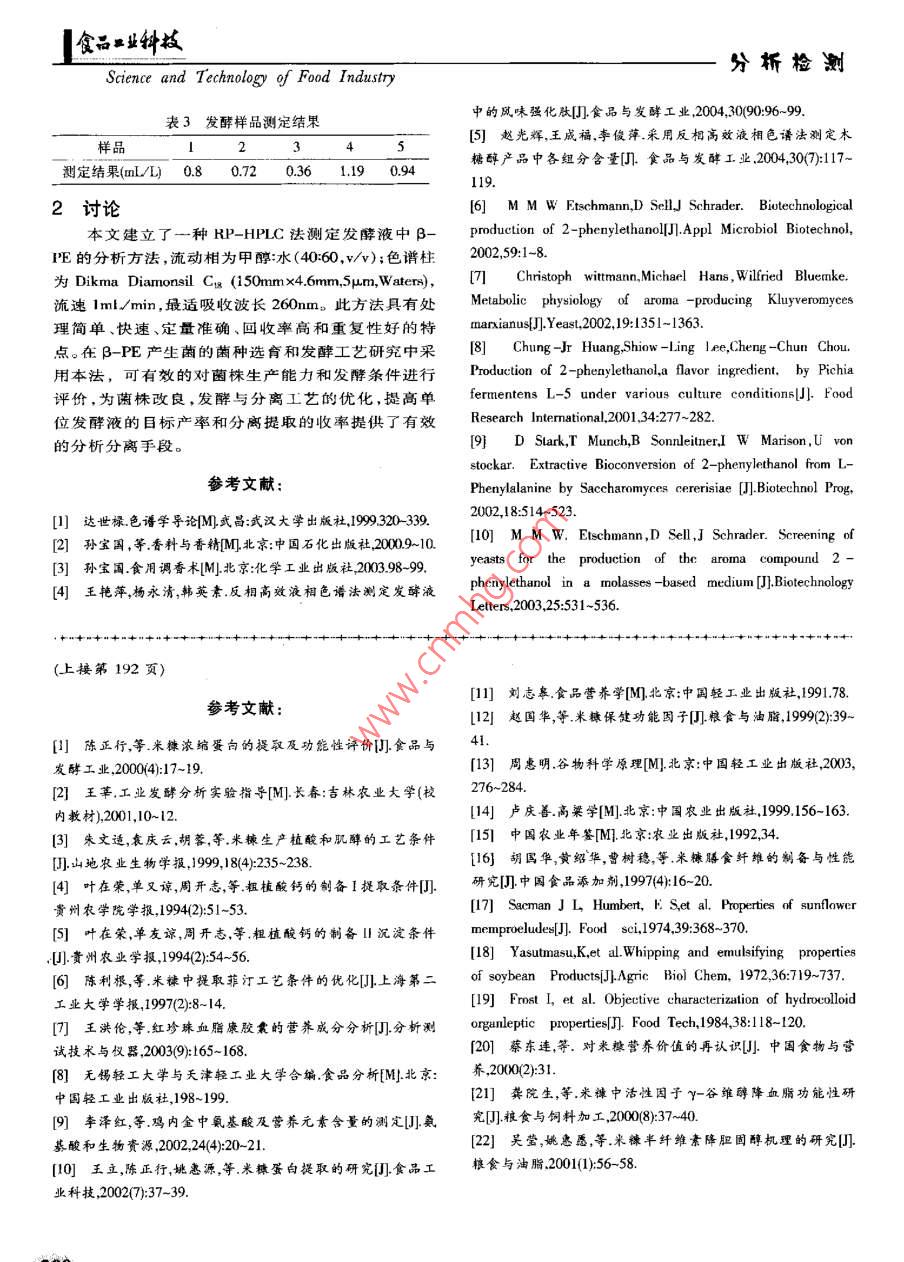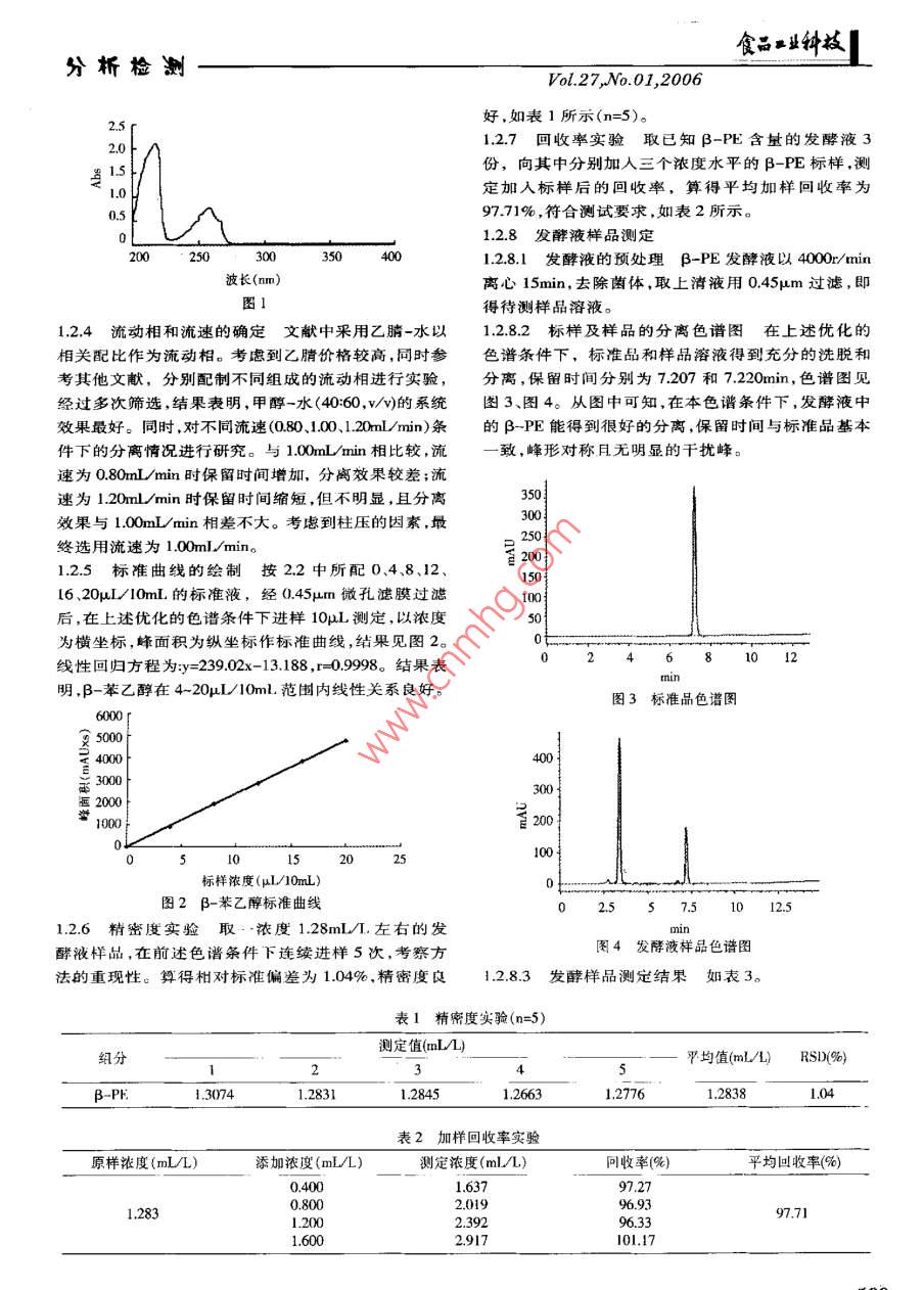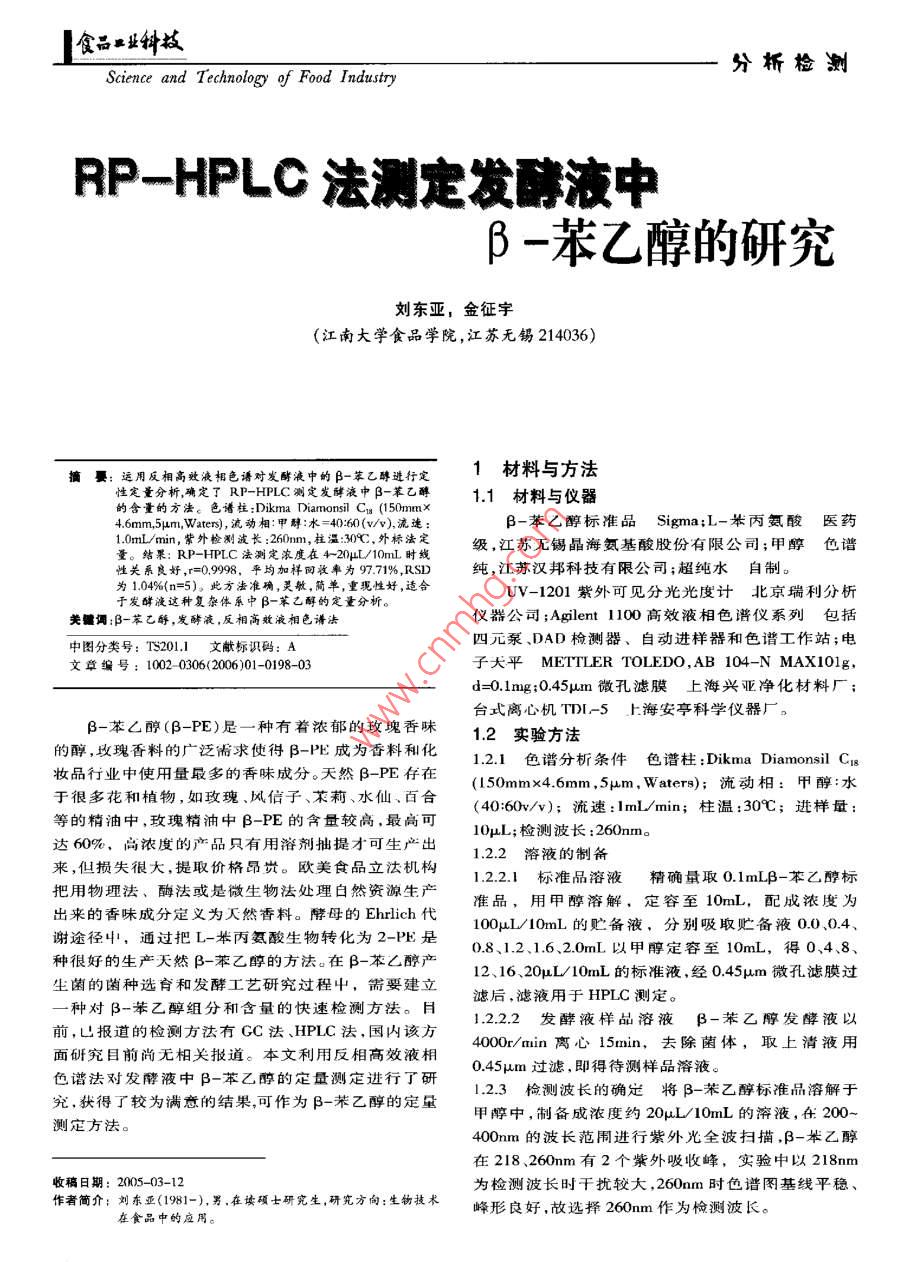 RP-HPLC法测定发酵液中β-苯乙醇的研究