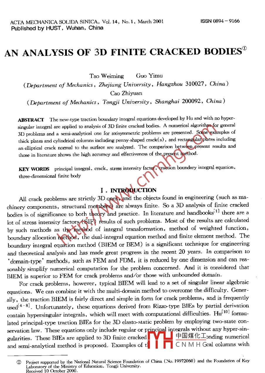 - 期刊名字:固体力学学报