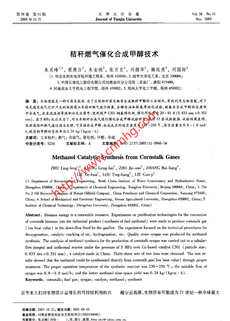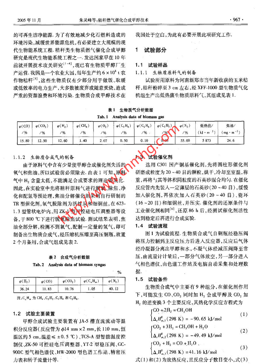 秸秆燃气催化合成甲醇技术
