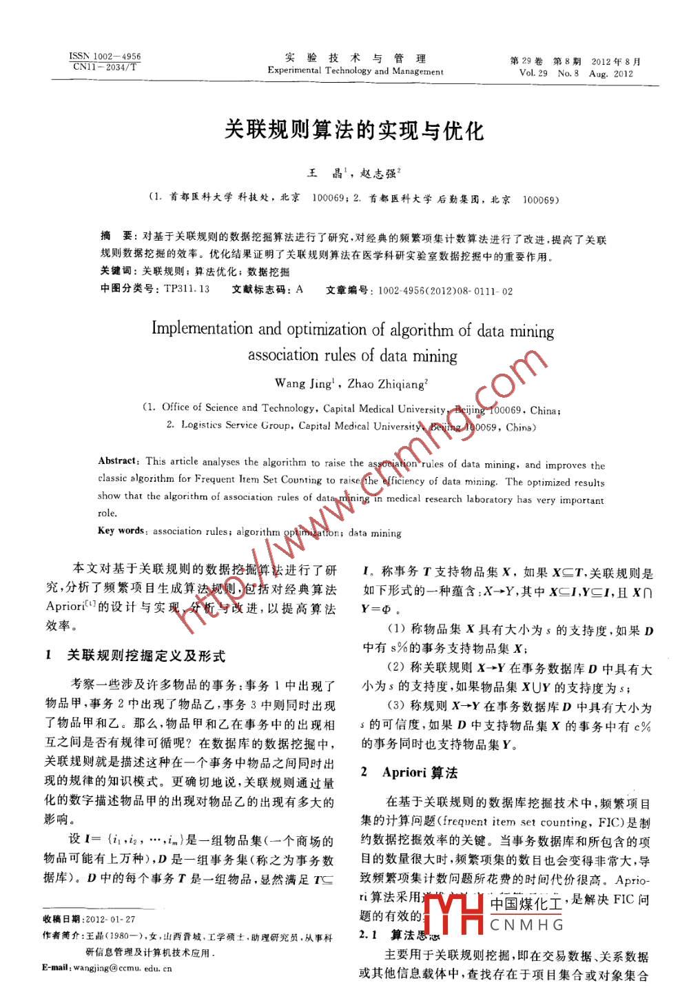 - 期刊名字:实验技术与管理