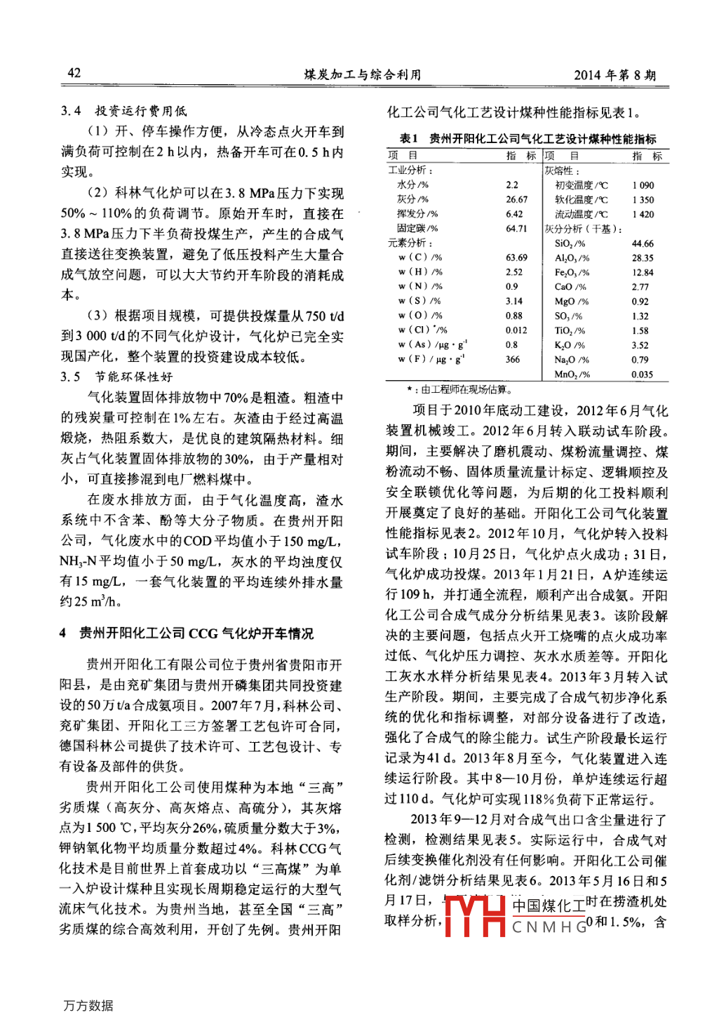 四喷嘴水煤浆气化炉工业应用情况简介 2020-07-12