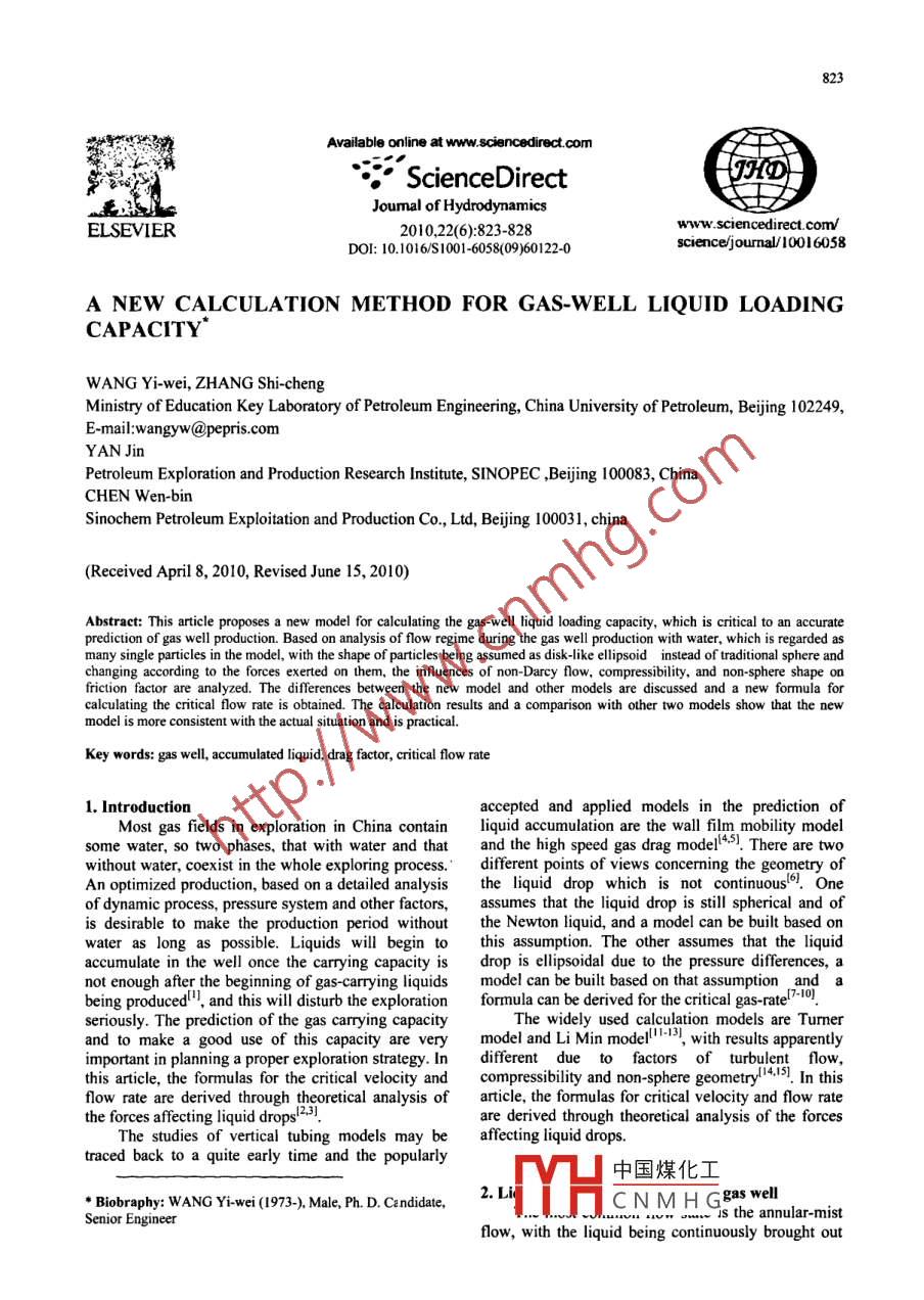 A NEW CALCULATION METHOD FOR GAS-WELL LIQUID LOADING CAPACITY