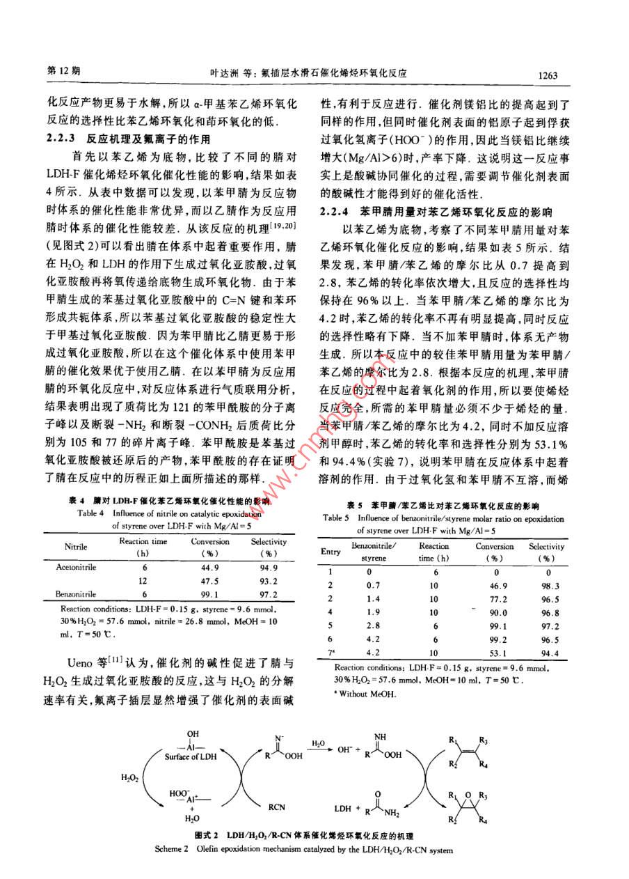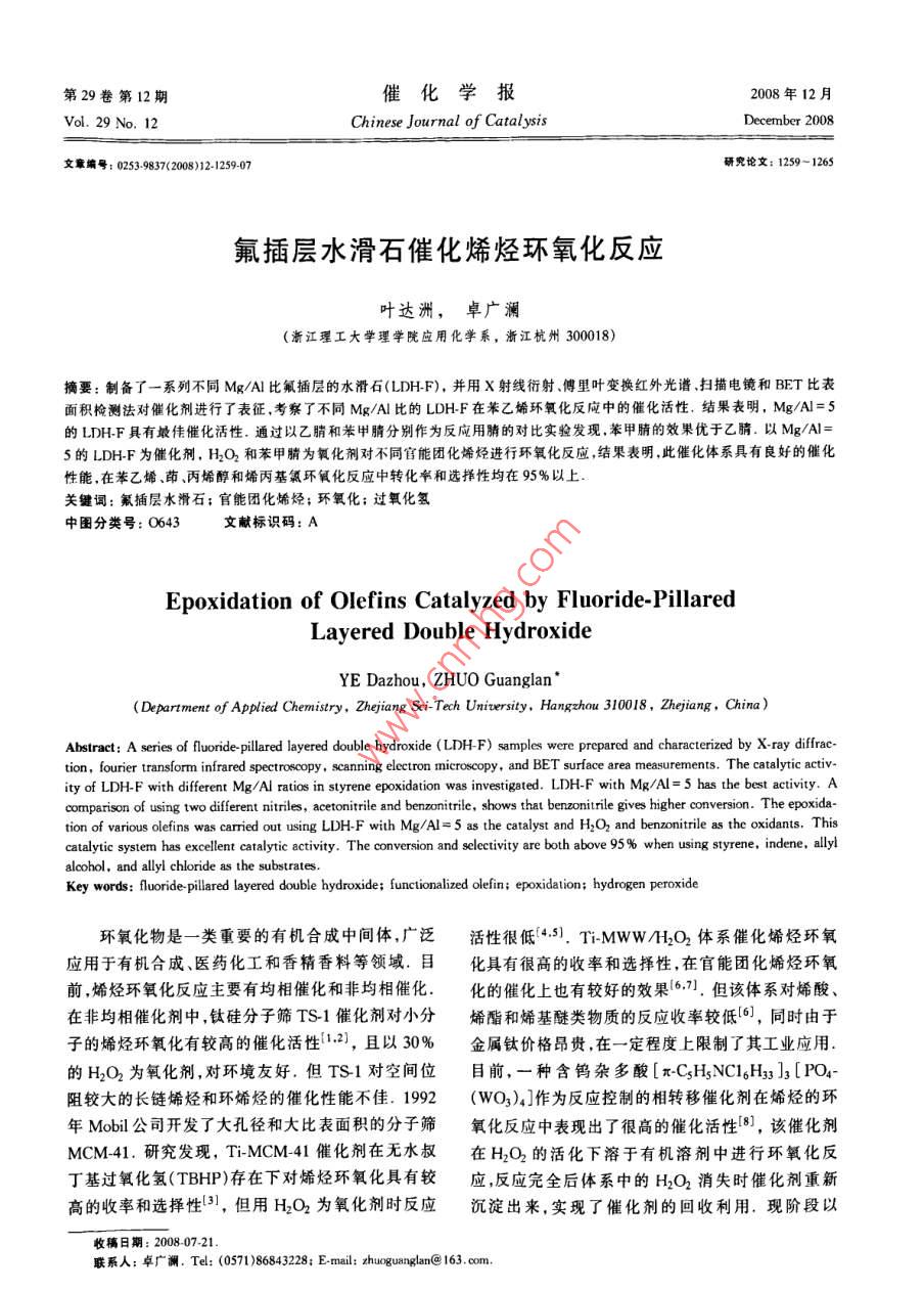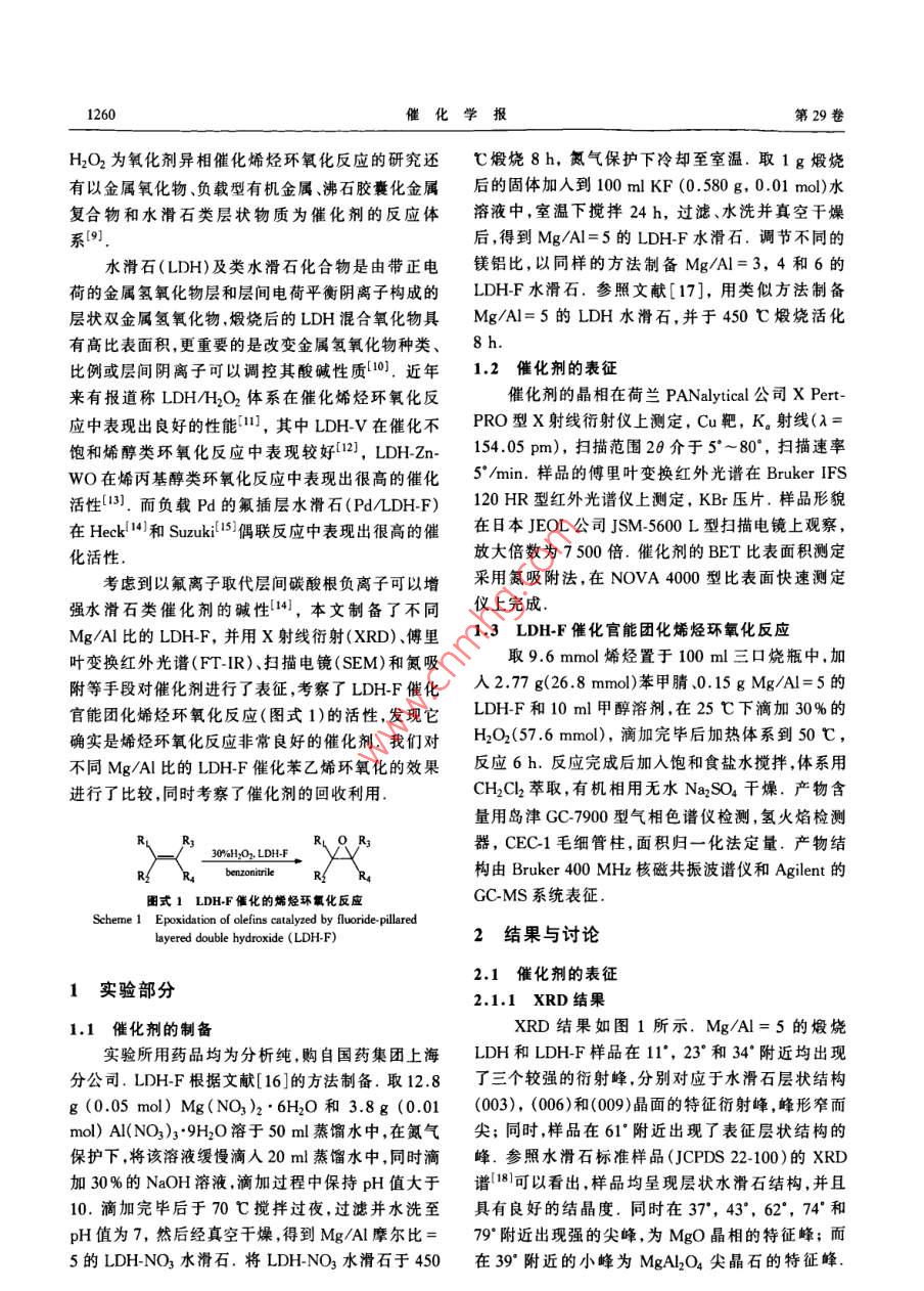 氟插层水滑石催化烯烃环氧化反应