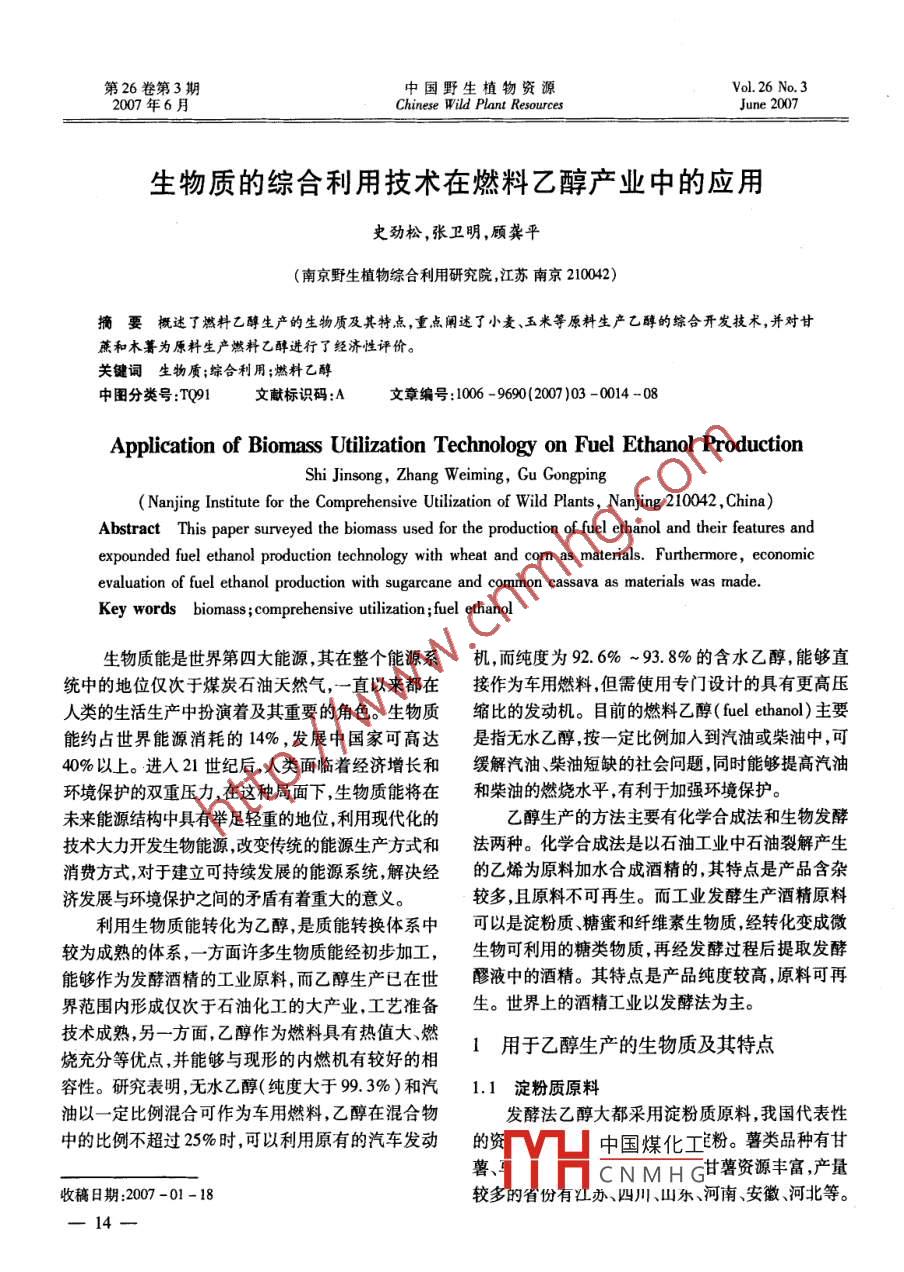 生物质的综合利用技术在燃料乙醇产业中的应用