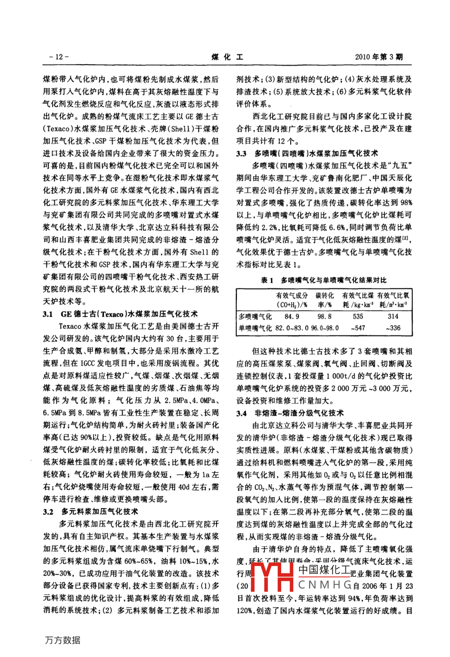 煤气化方法的比较及分析