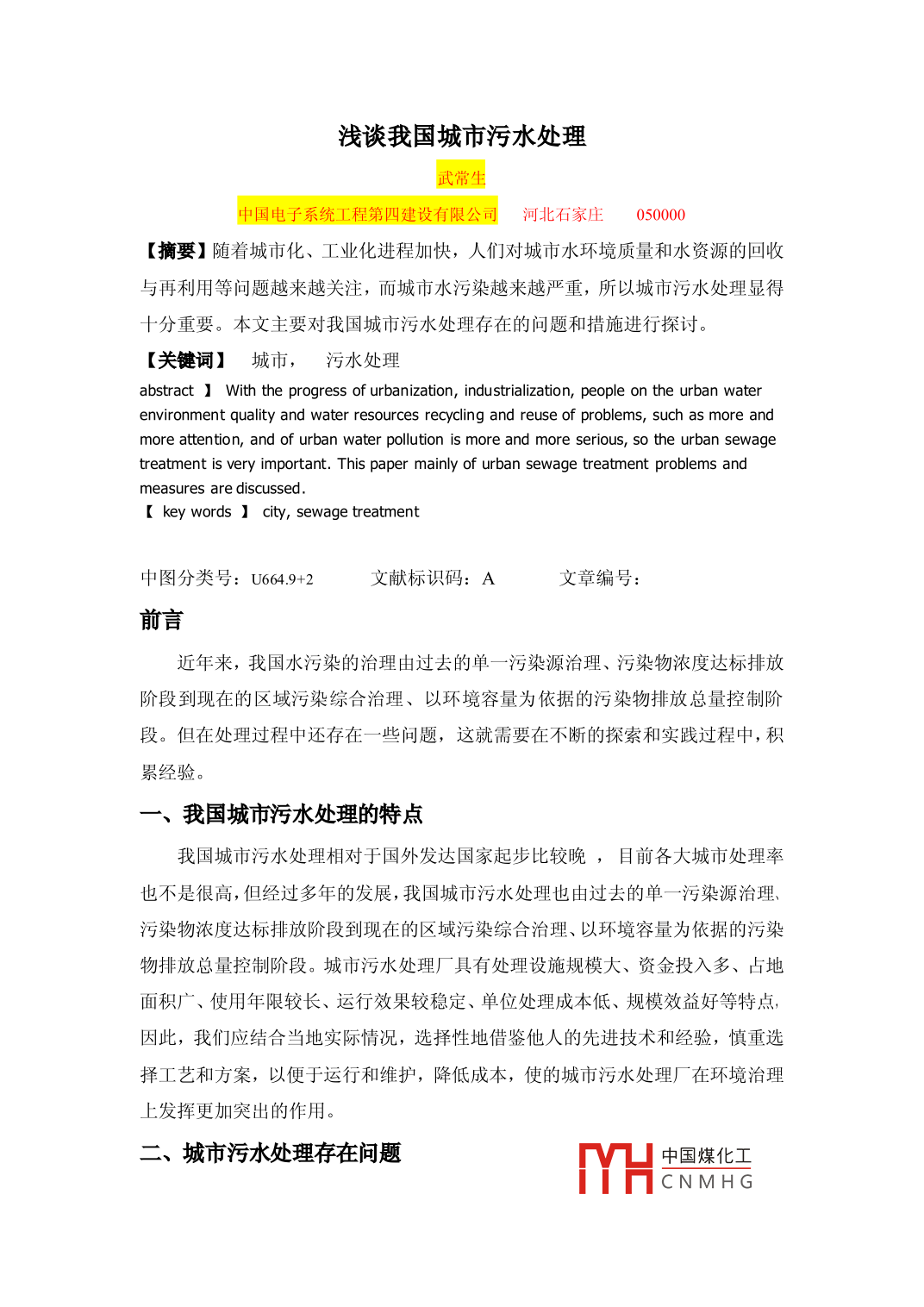 浅谈我国城市污水处理