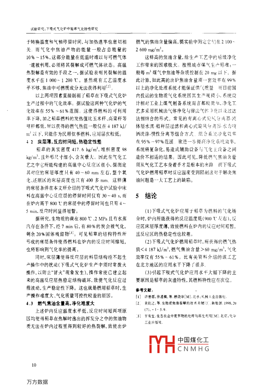下吸式气化炉中稻草气化特性研究