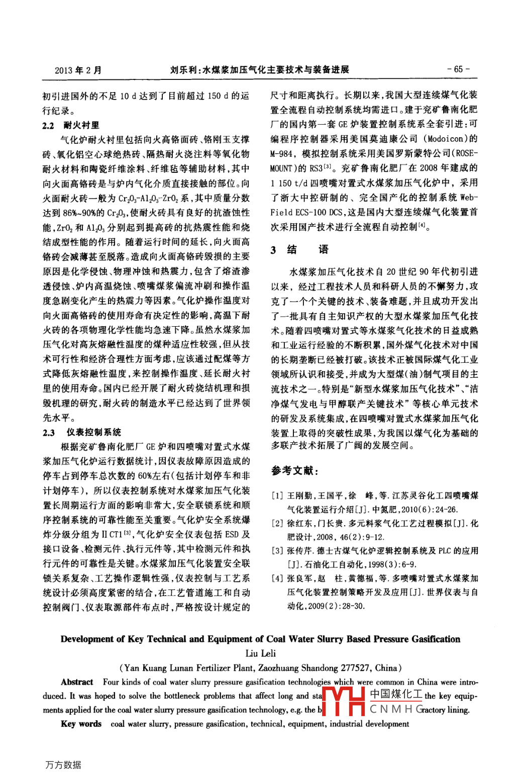 水煤浆加压气化主要技术与装备进展