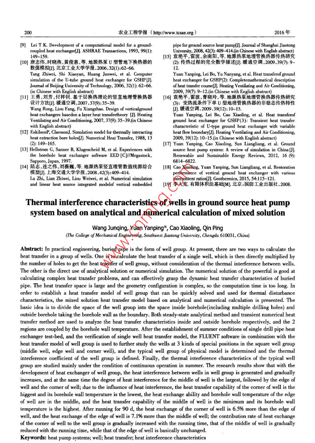 基于混合解换热模型的地源热泵系统井群热干扰特性