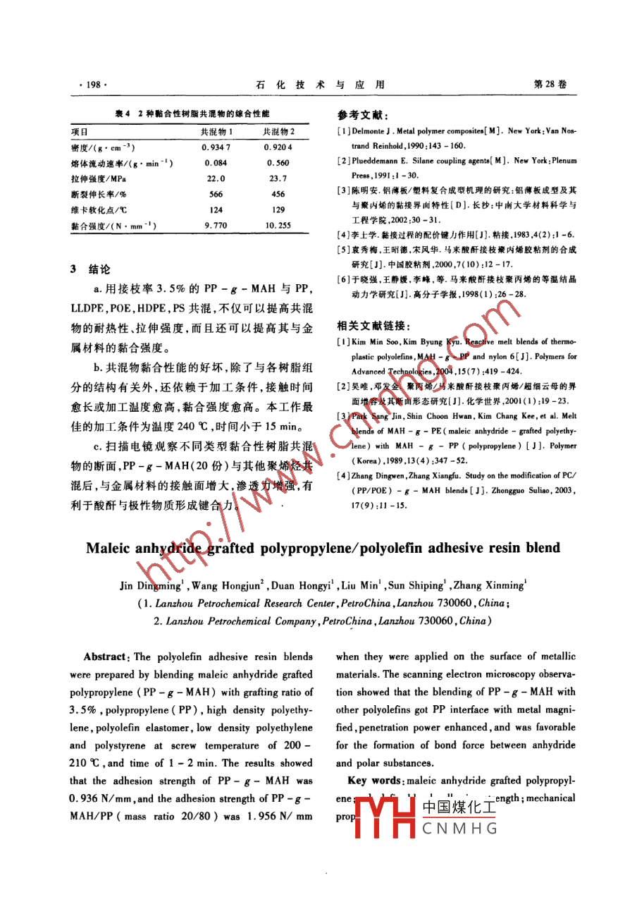 马来酸酐接枝聚丙烯/聚烯烃黏合性树脂共混物