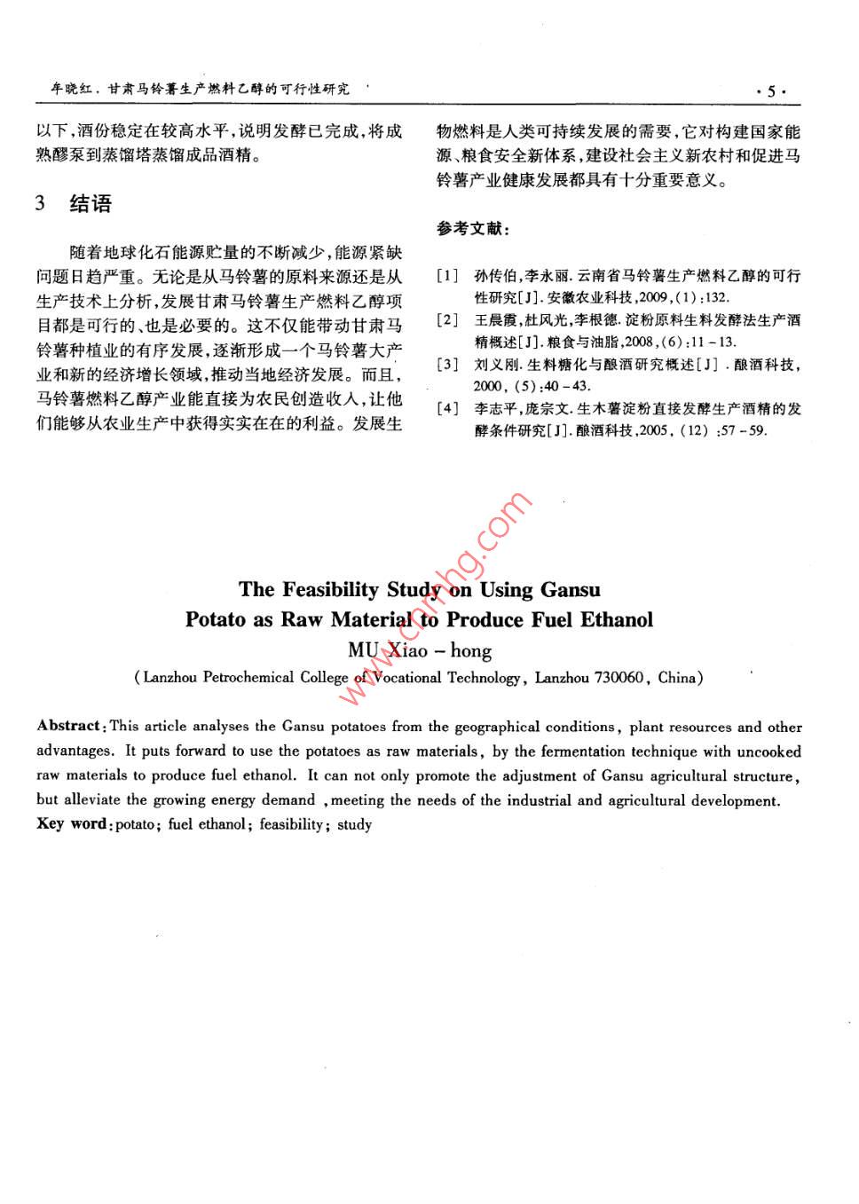 甘肃马铃薯生产燃料乙醇的可行性研究
