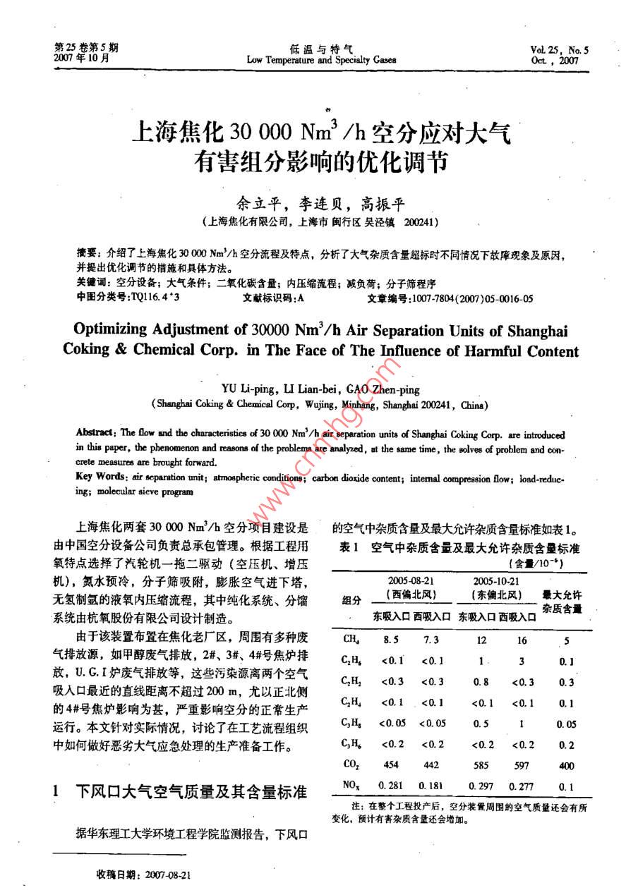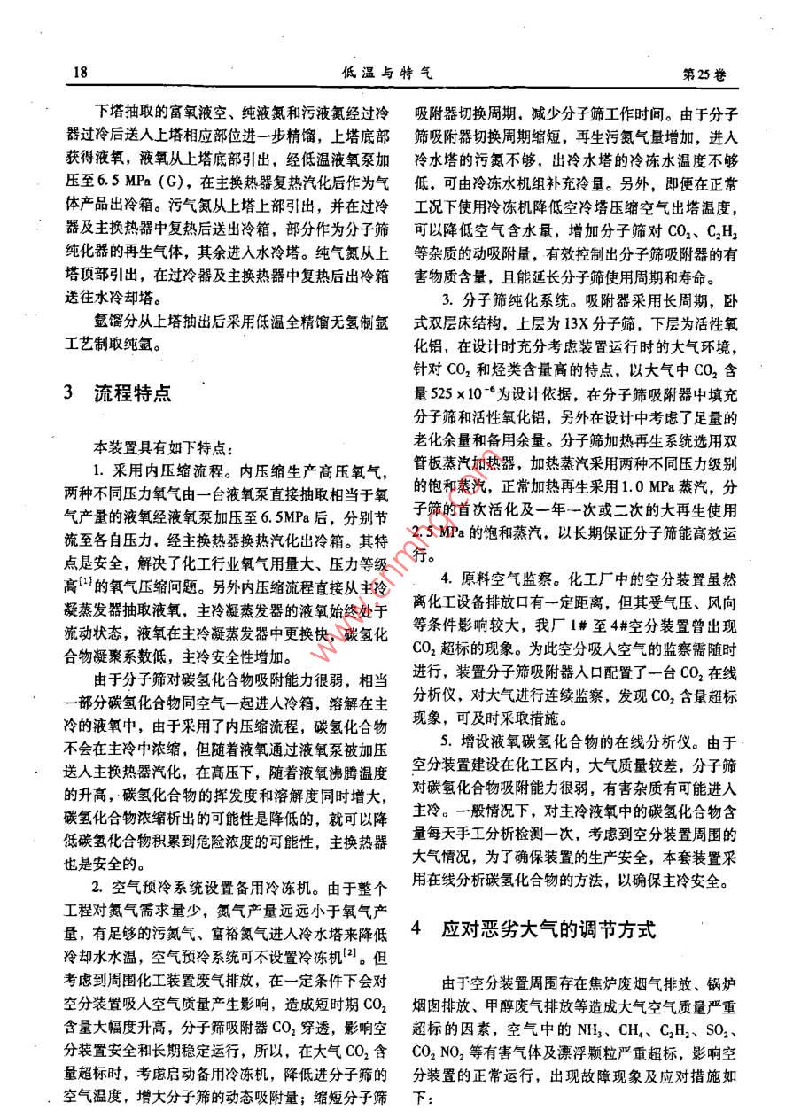 上海焦化30 000 Nm3/h空分应对大气有害组分影响的优化调节