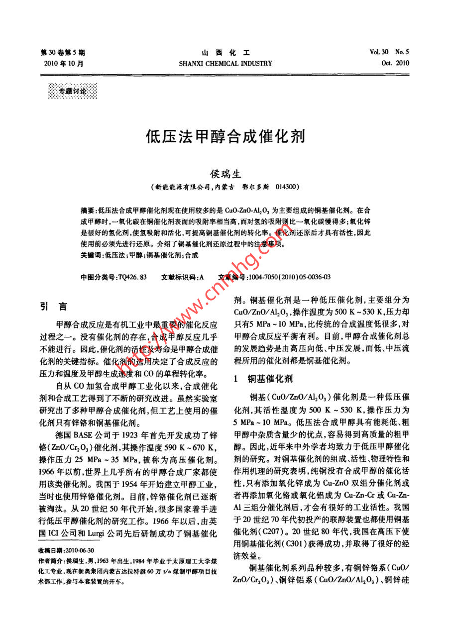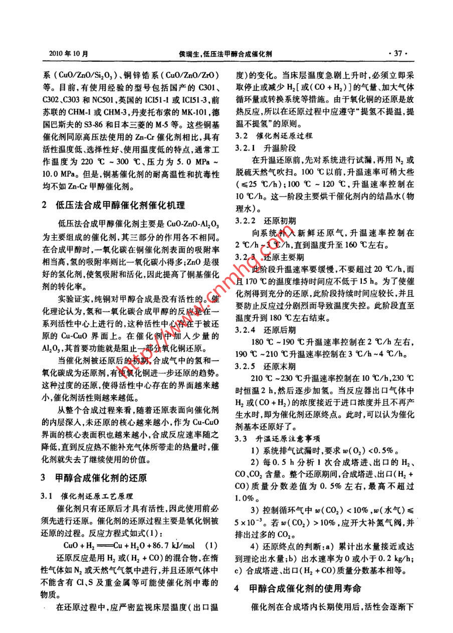 低压法甲醇合成催化剂
