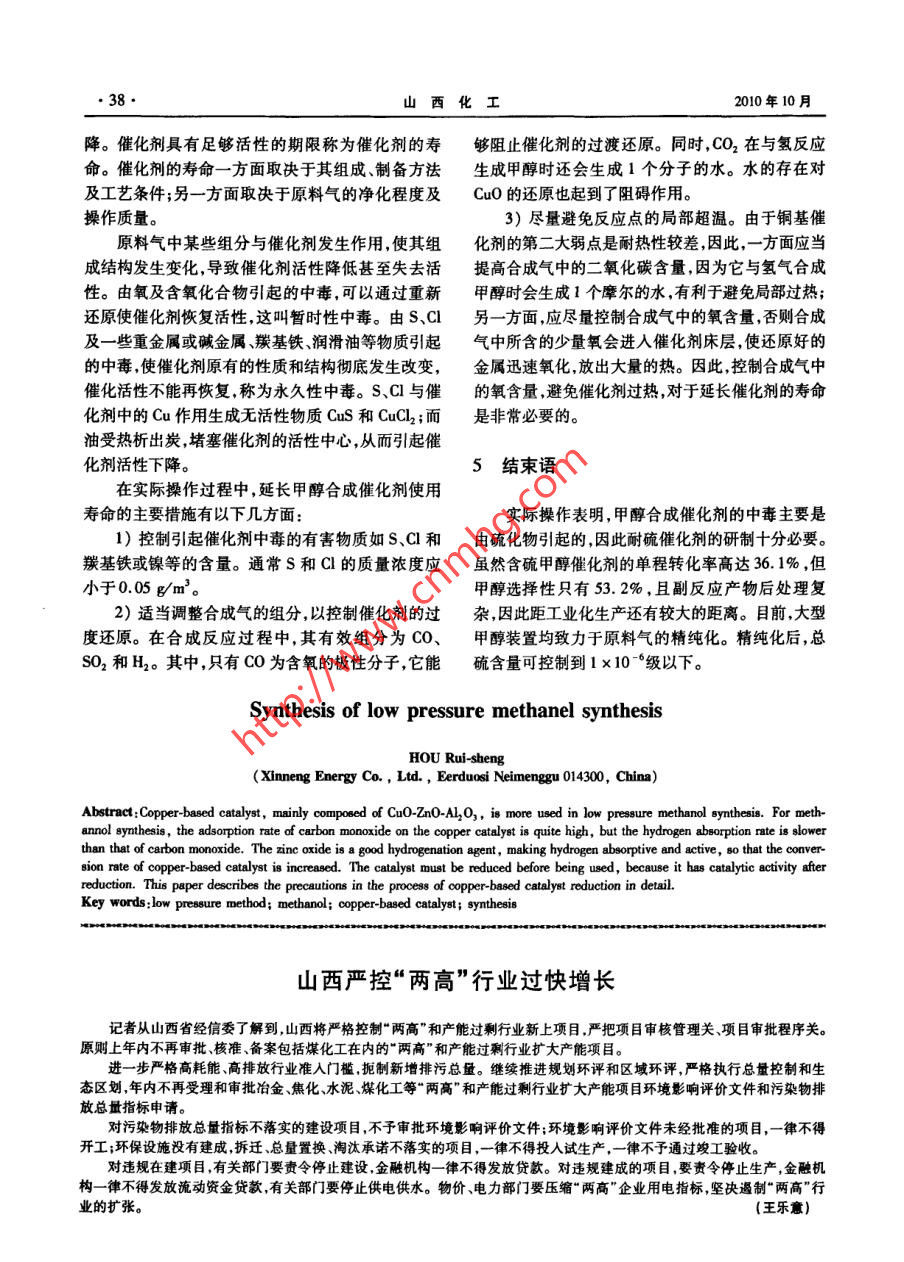 - 期刊名字:山西化工